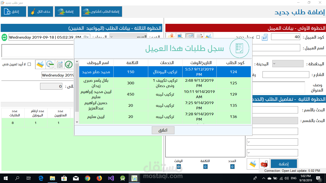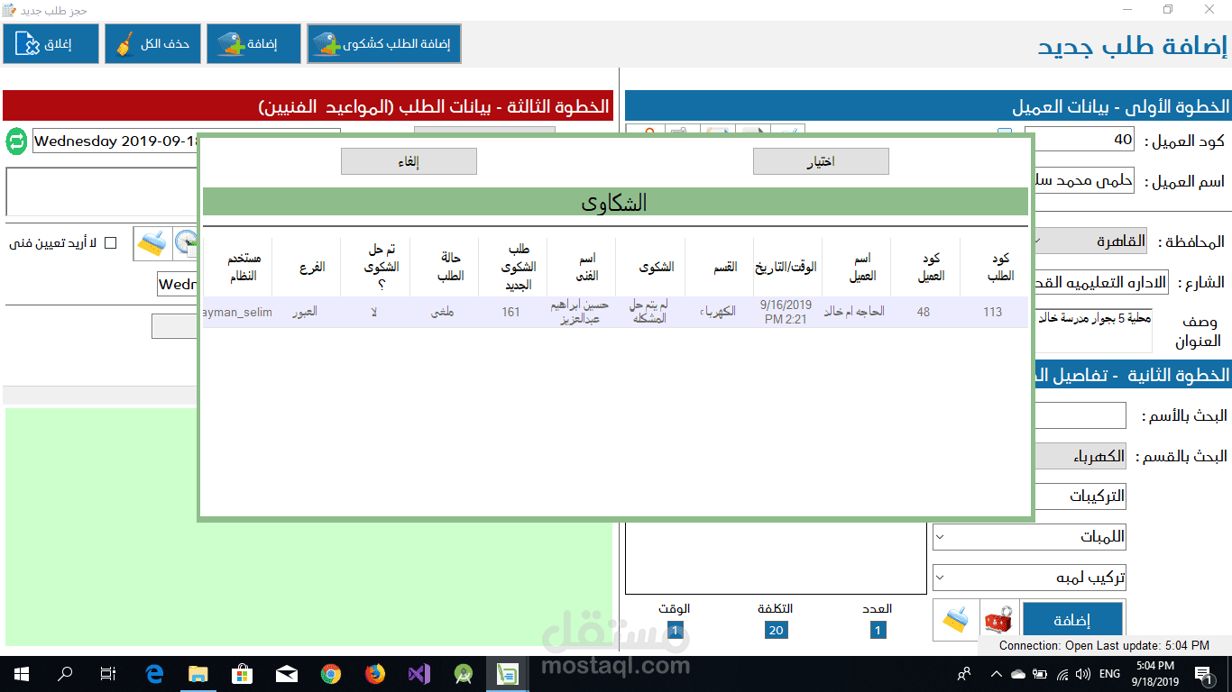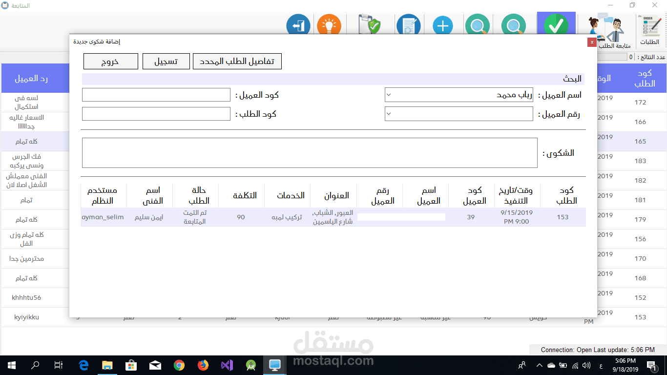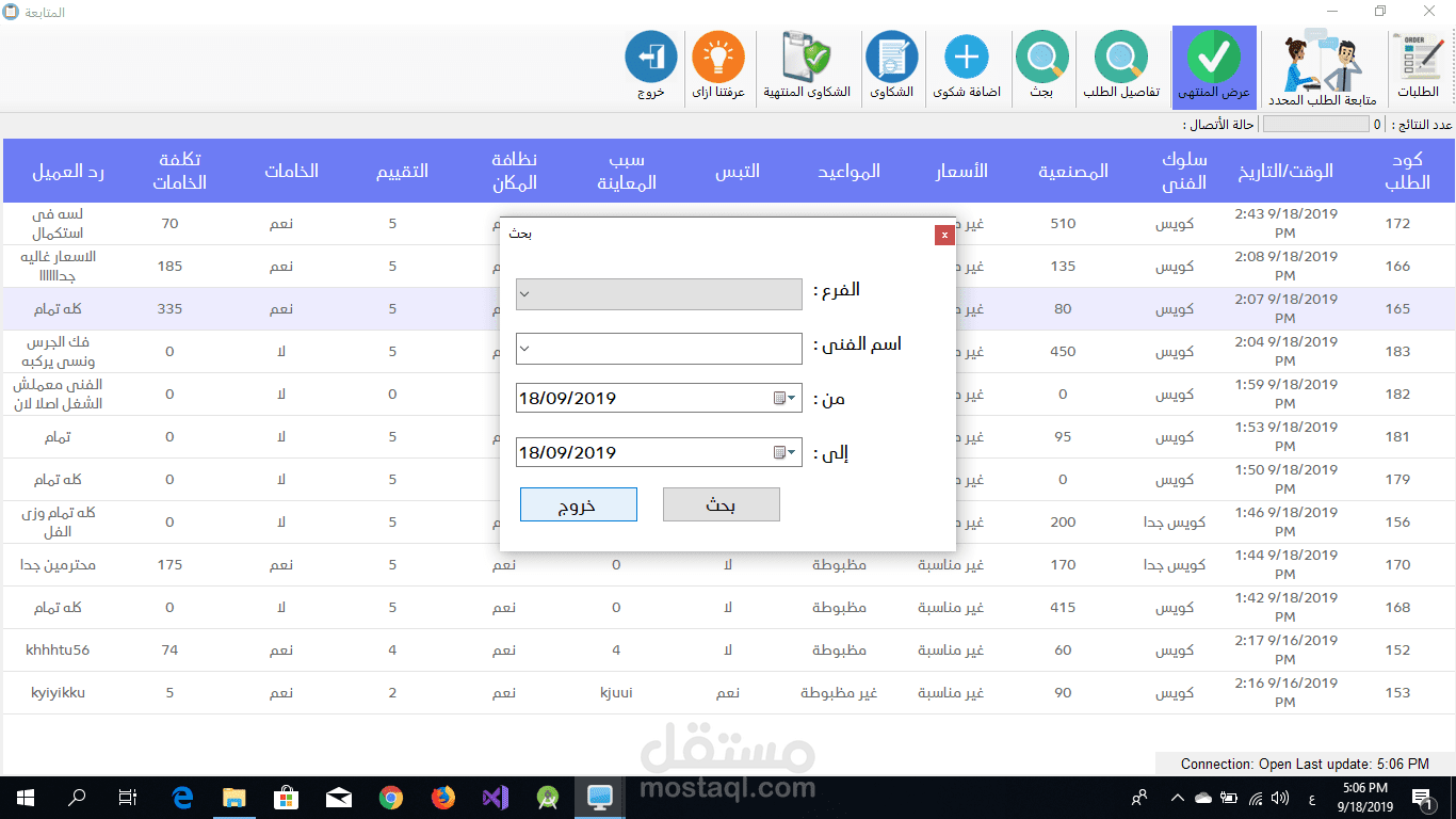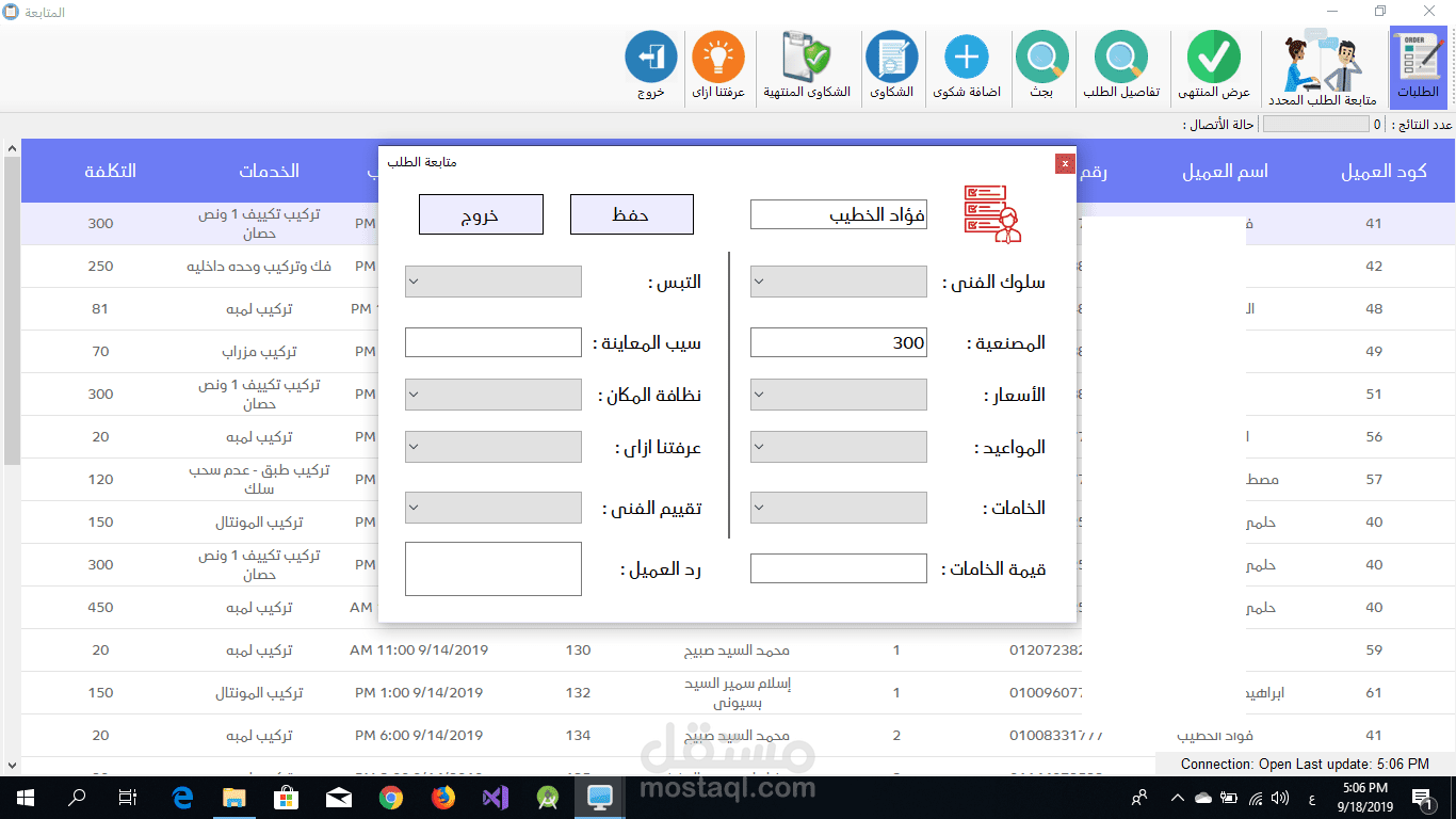 5- شاشة لمتابعة العمل مع العملاء والتقييم وتلقى الشكاوى.