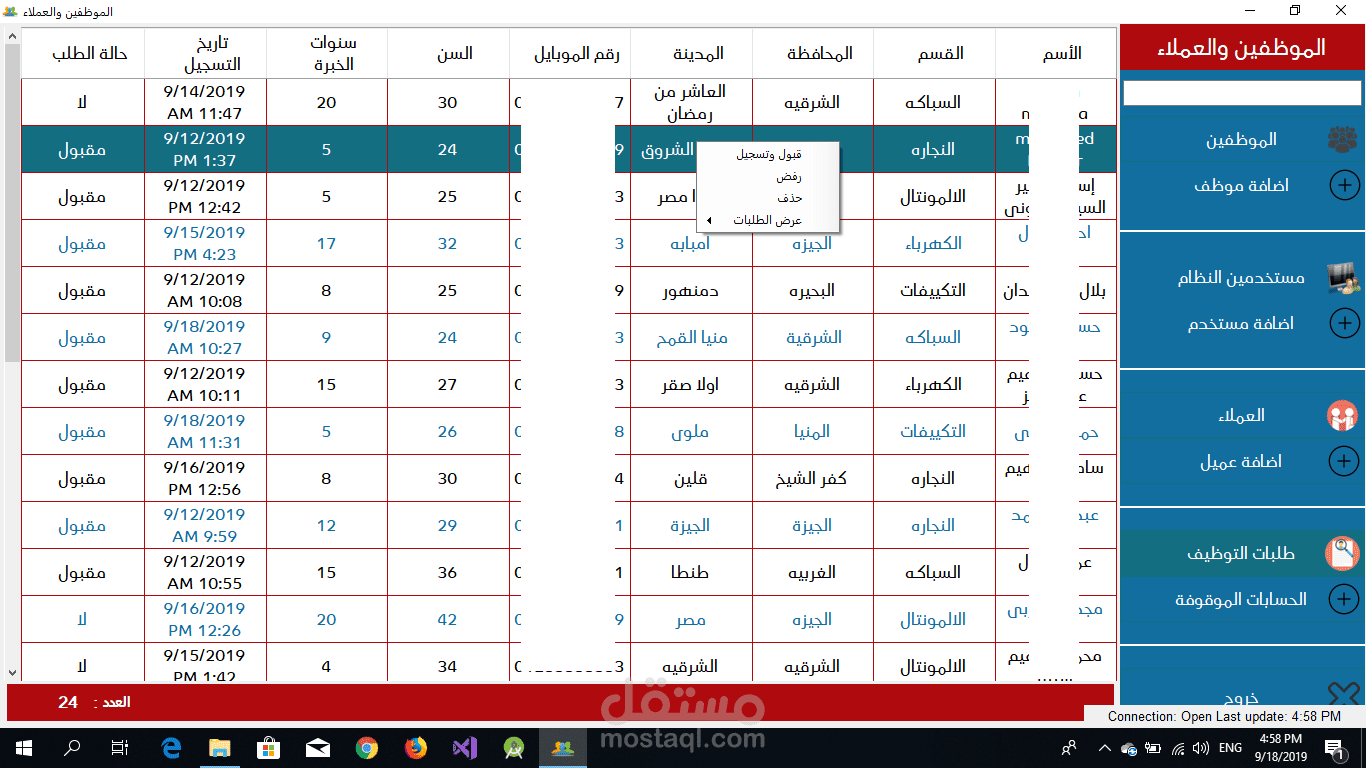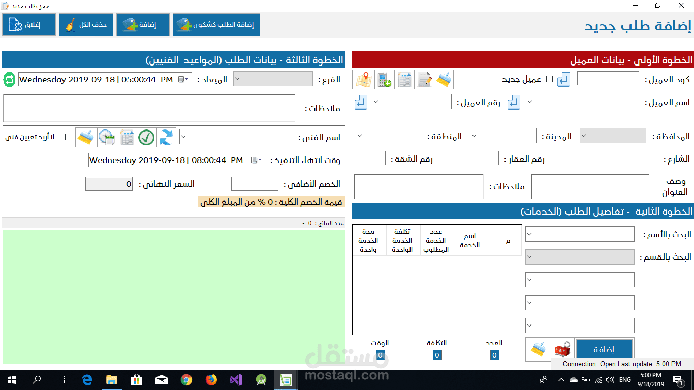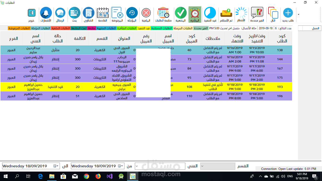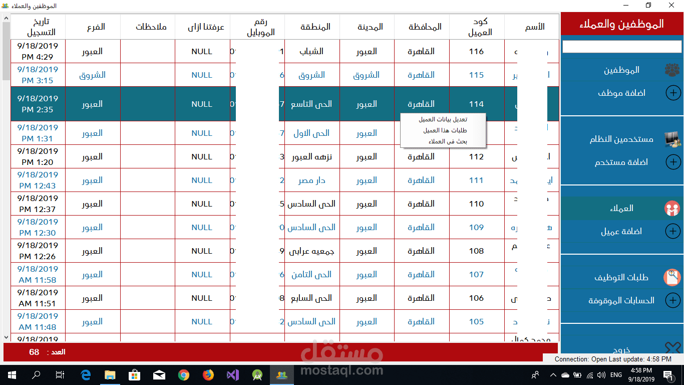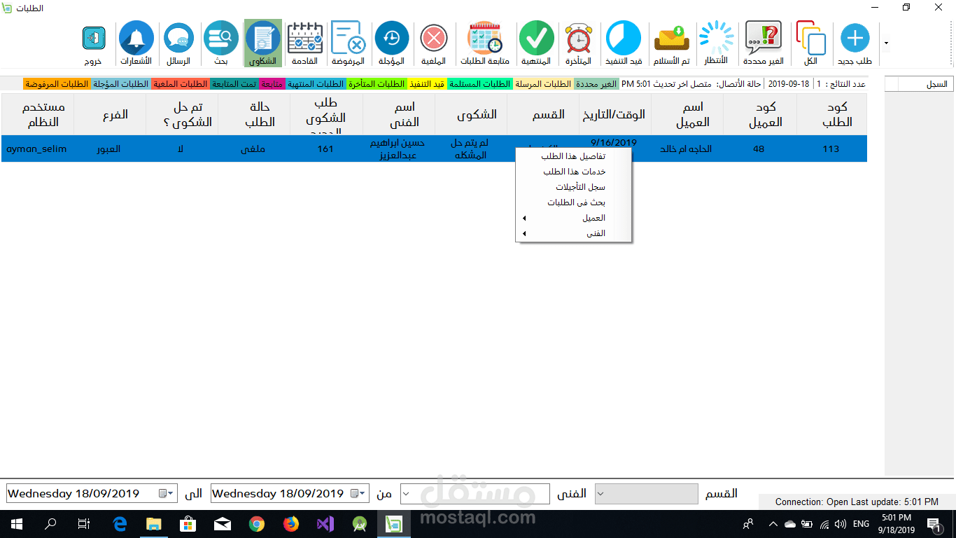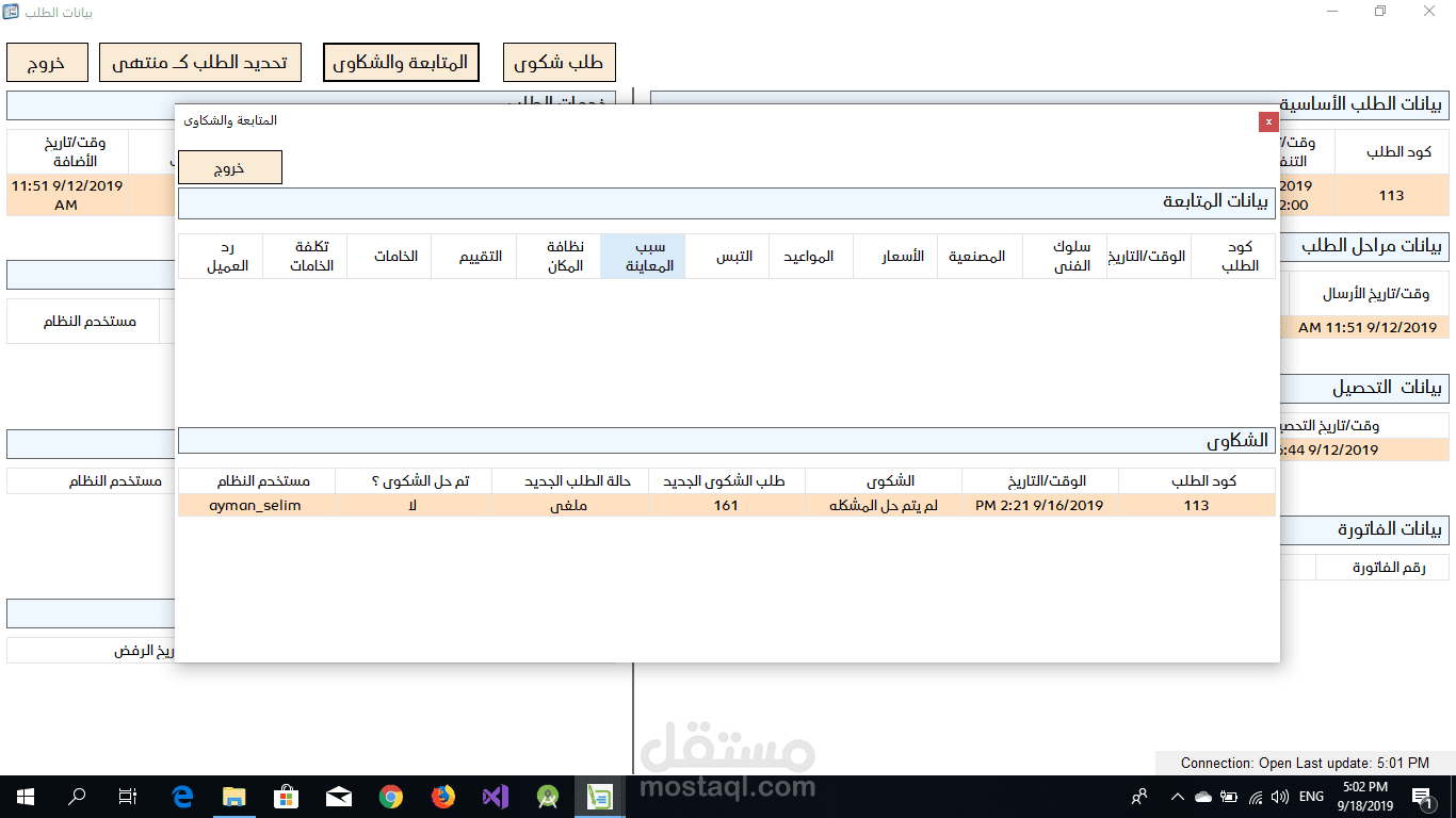 5- شاشة لمتابعة العمل مع العملاء والتقييم وتلقى الشكاوى.