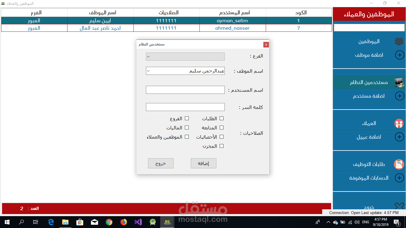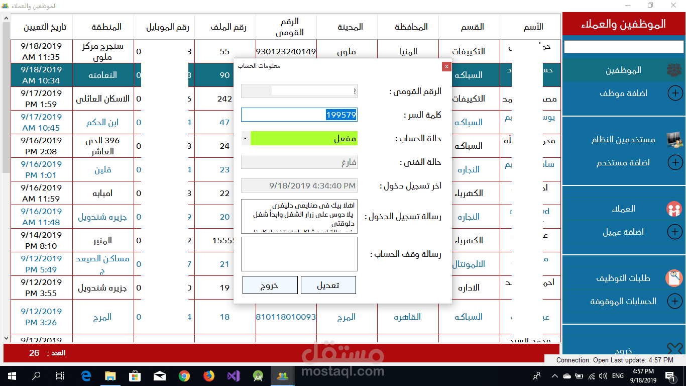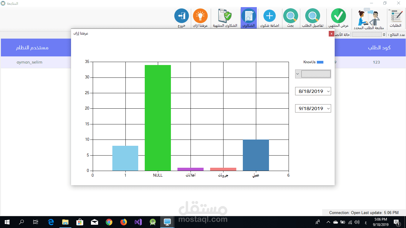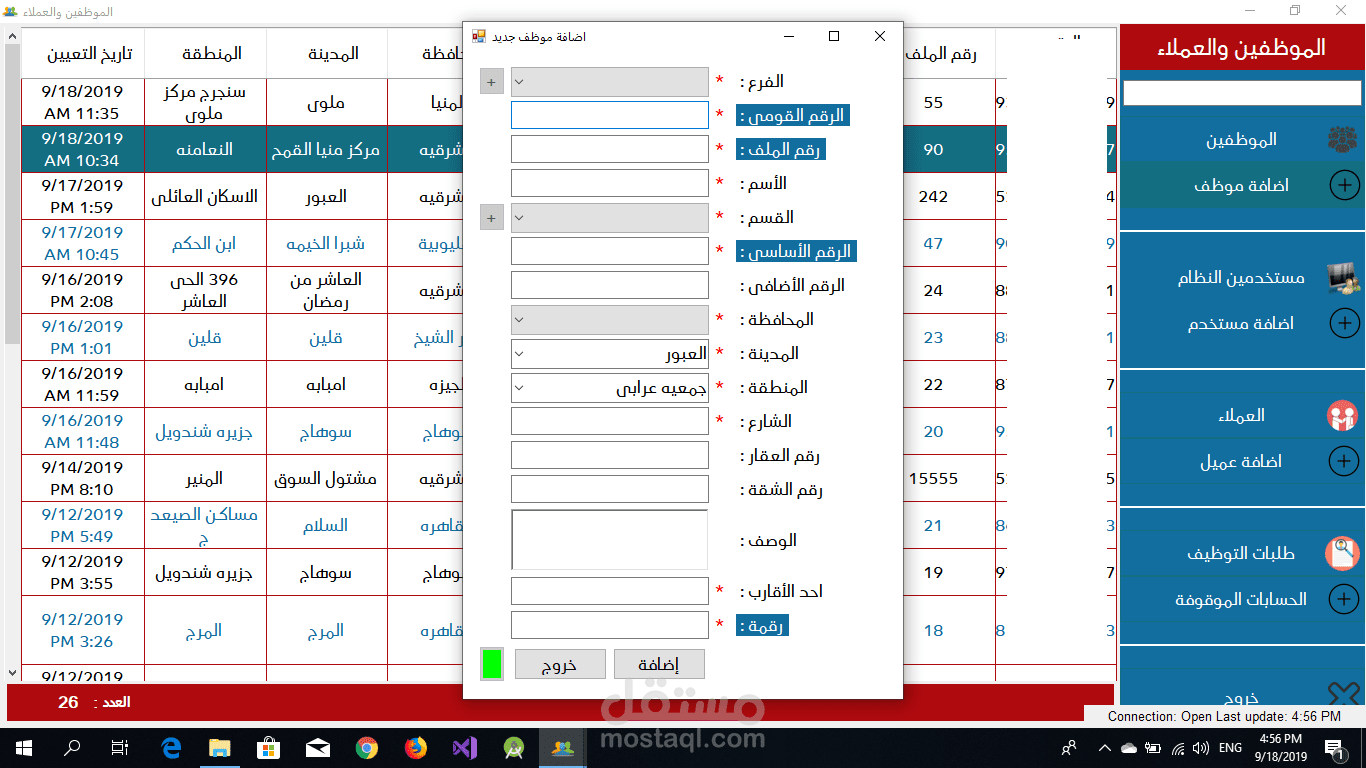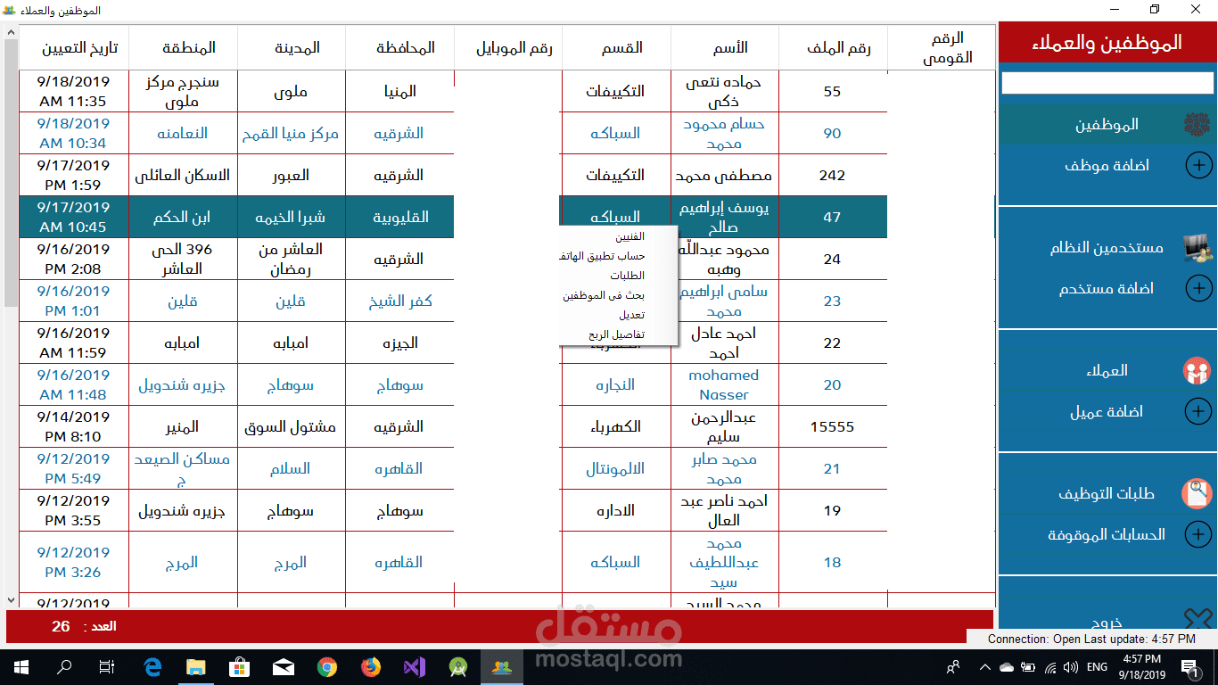 5- شاشة لمتابعة العمل مع العملاء والتقييم وتلقى الشكاوى.