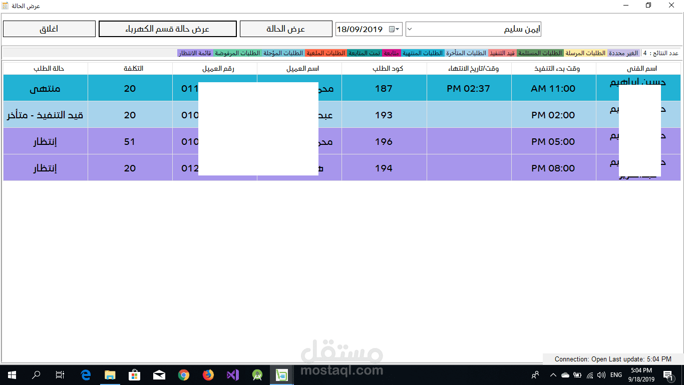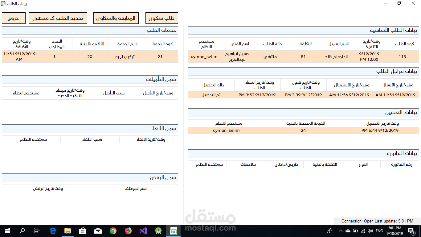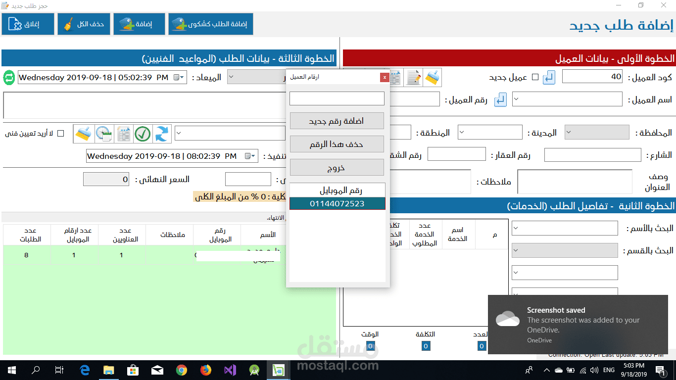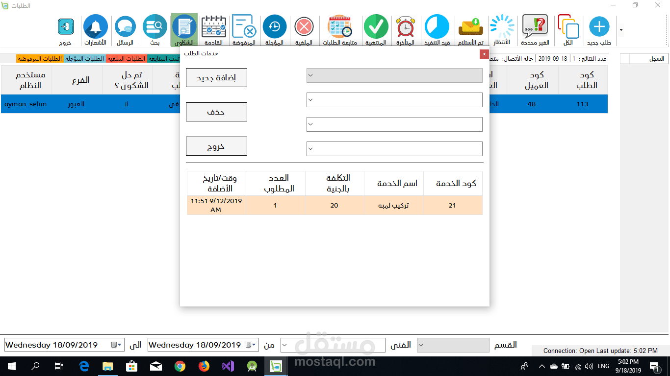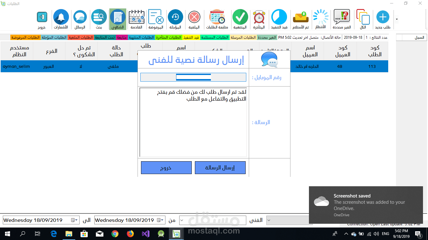 4- شاشة لأدارة الطلبات الواردة من العملاء وجميع العمليات على الطلبات.
