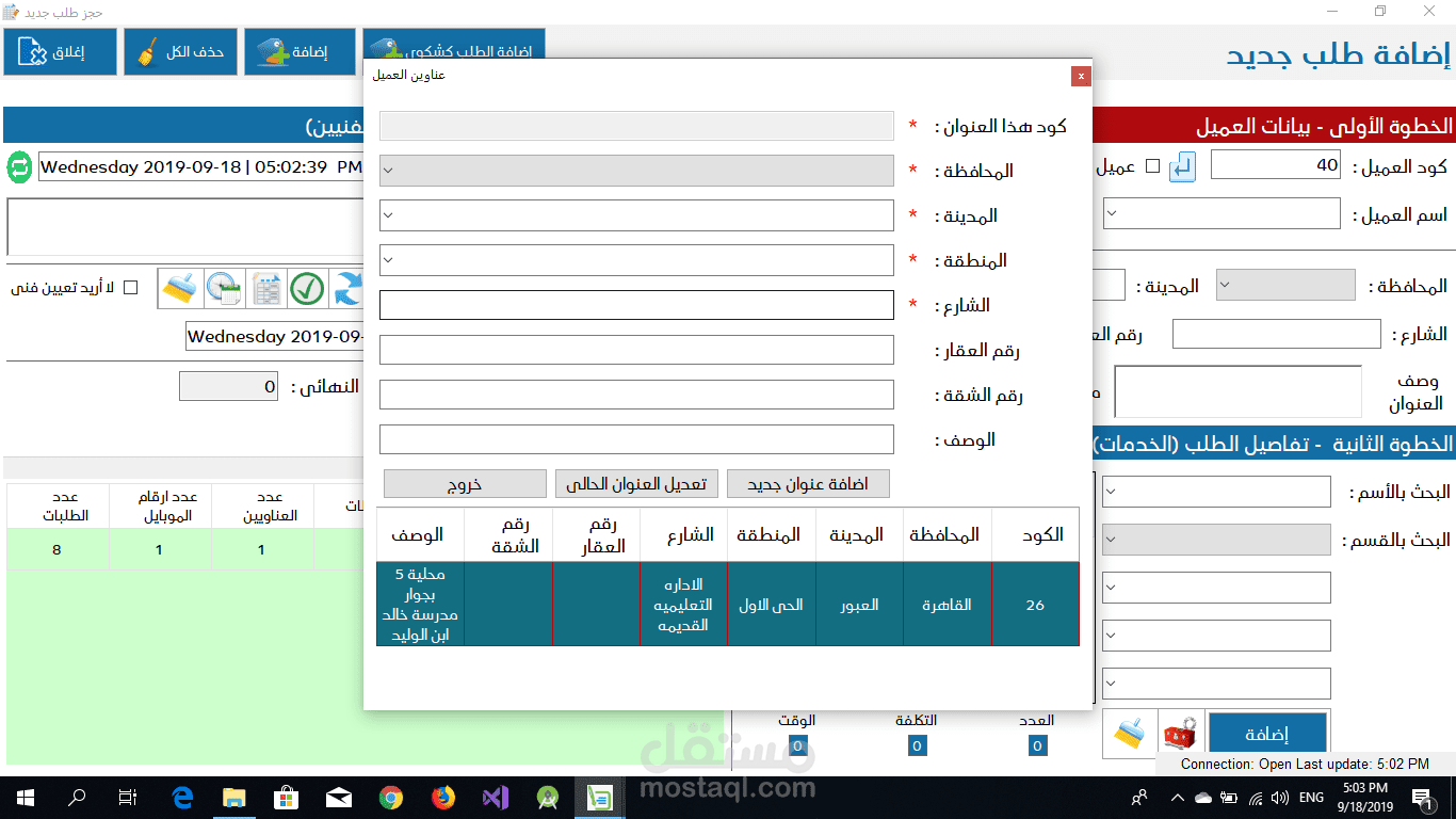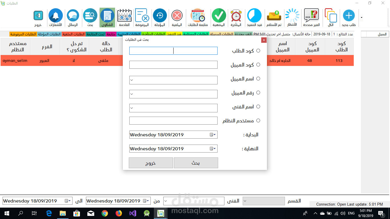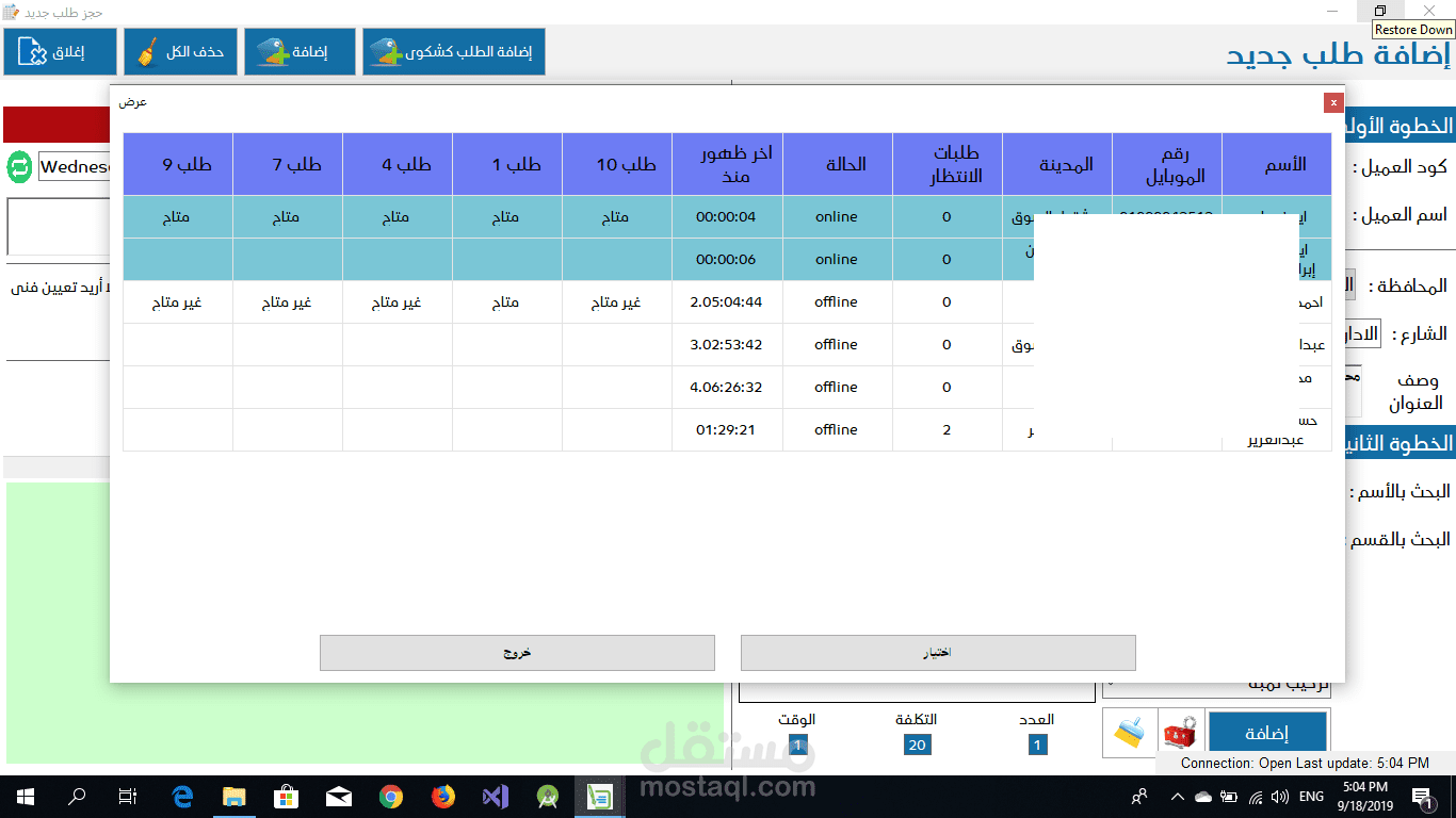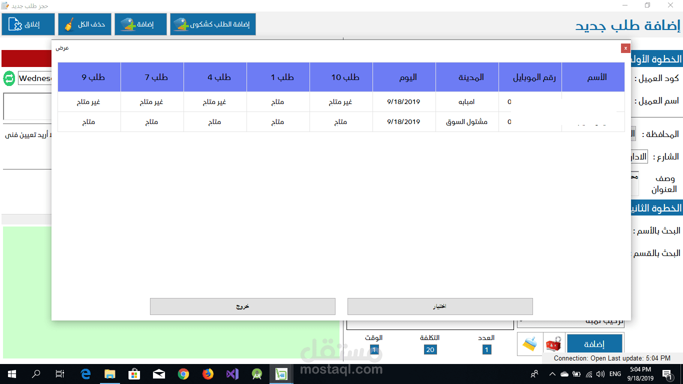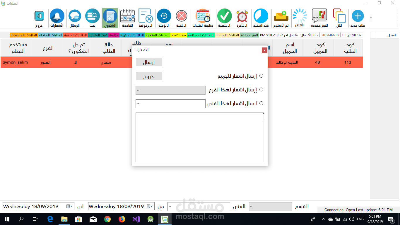 4- شاشة لأدارة الطلبات الواردة من العملاء وجميع العمليات على الطلبات.