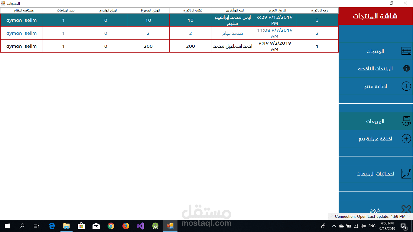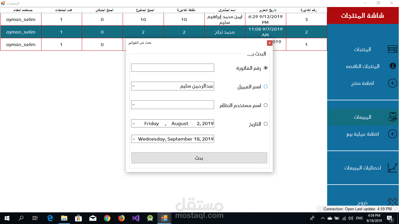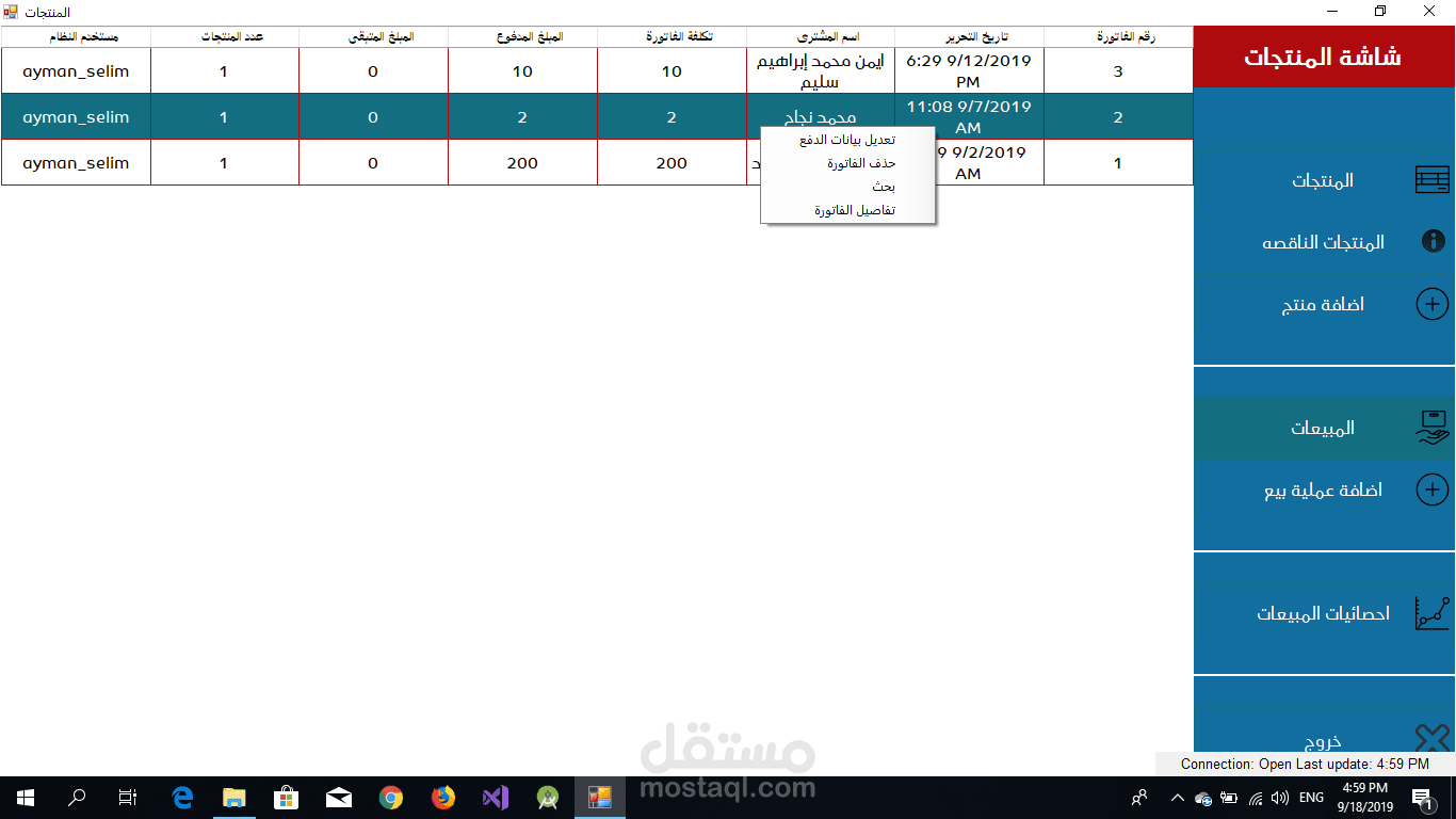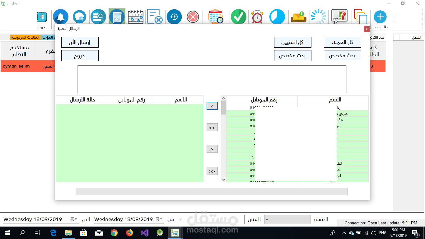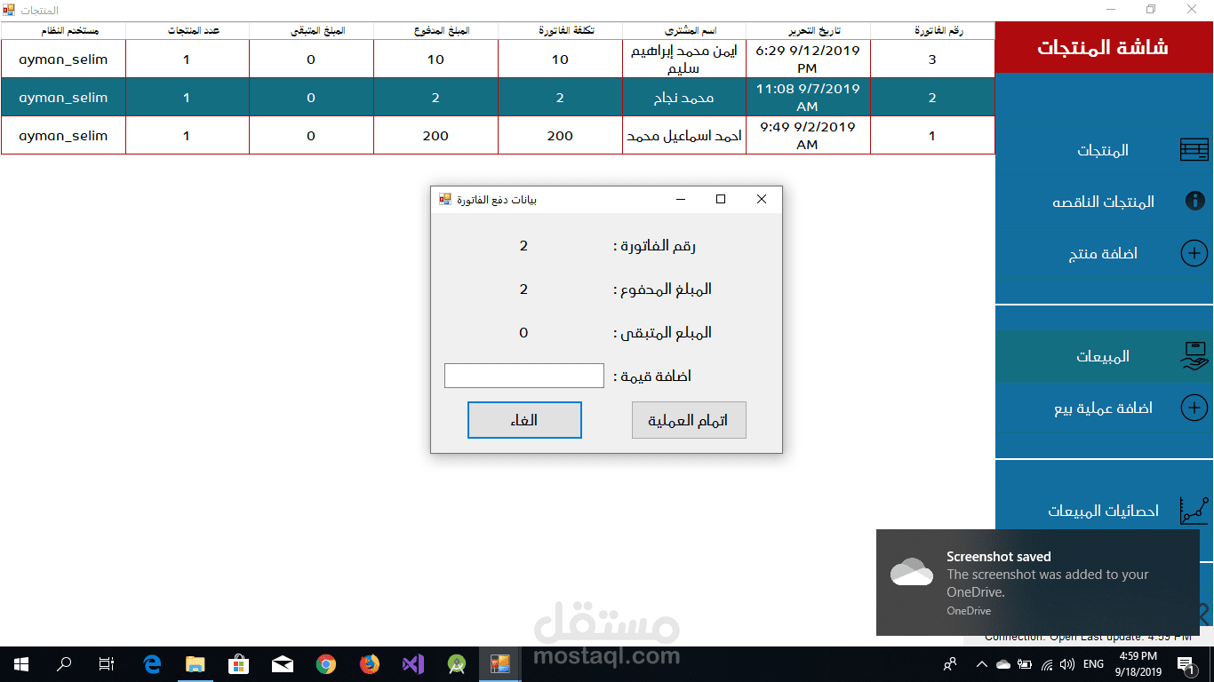 4- شاشة لأدارة الطلبات الواردة من العملاء وجميع العمليات على الطلبات.