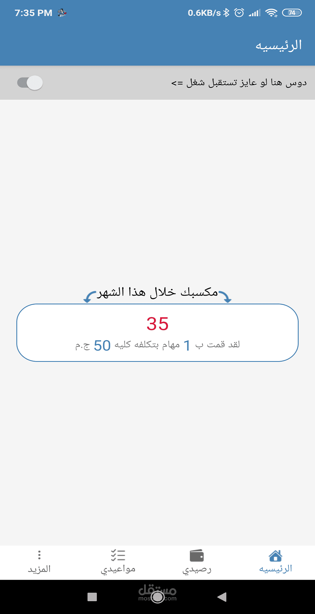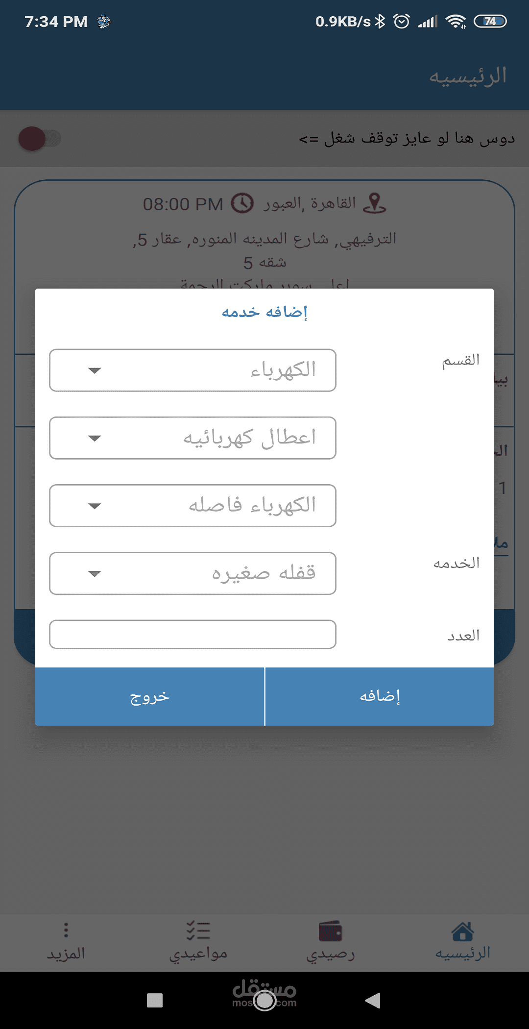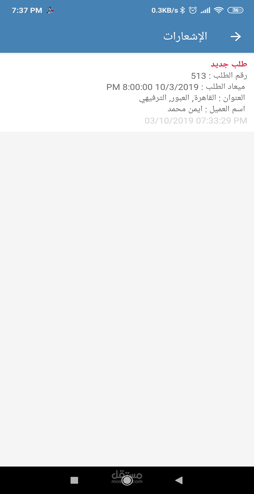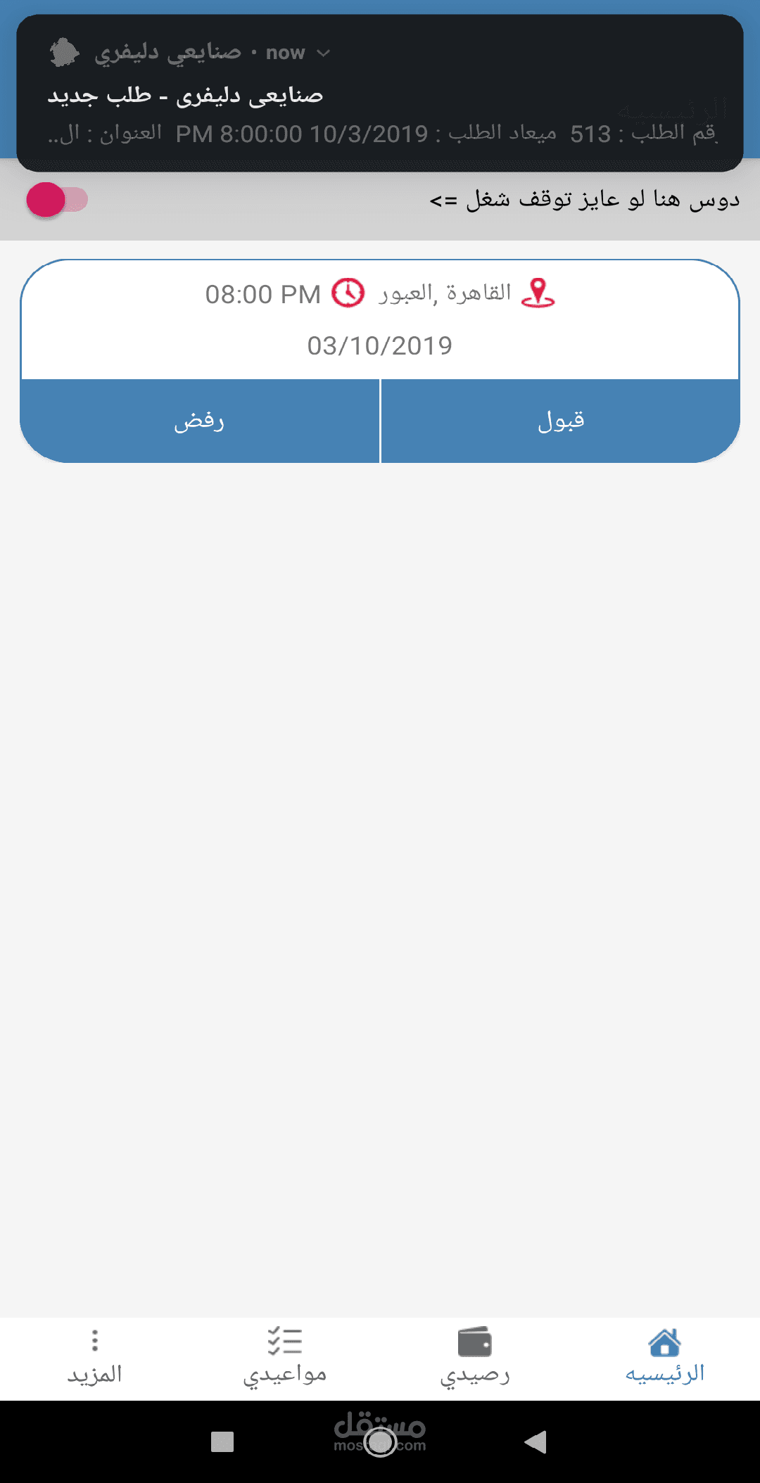 8- تطبيق للموبايل مع الفنى لتلقى الطلبات ومتابعة حسابة.