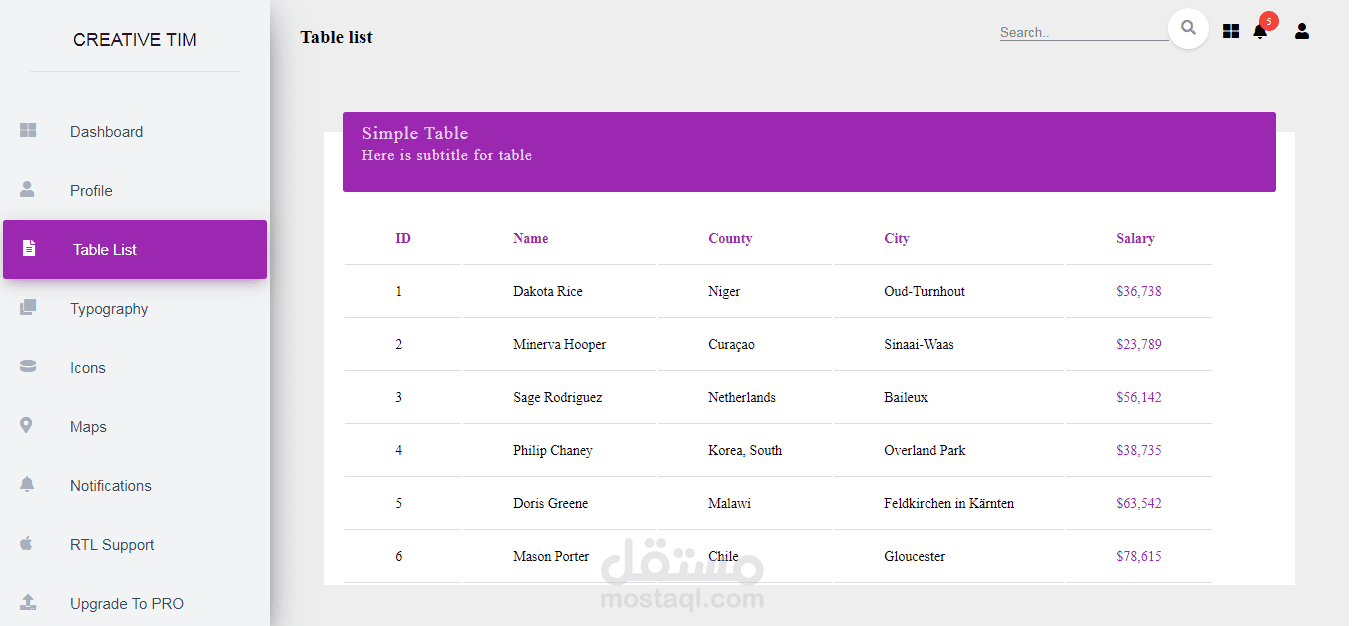 dashboard user table