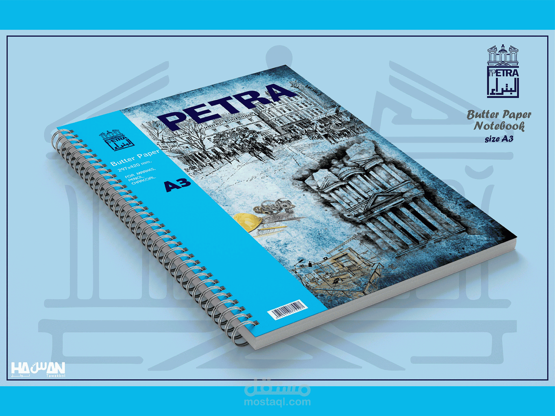 المشروع عبارة عن شركة تقوم بصناعة الورق في المملكة الأردنية الهاشمية, طلب عمل لوجو للشركة بإسم البتراء وعمل دفاتر ورق زبدة