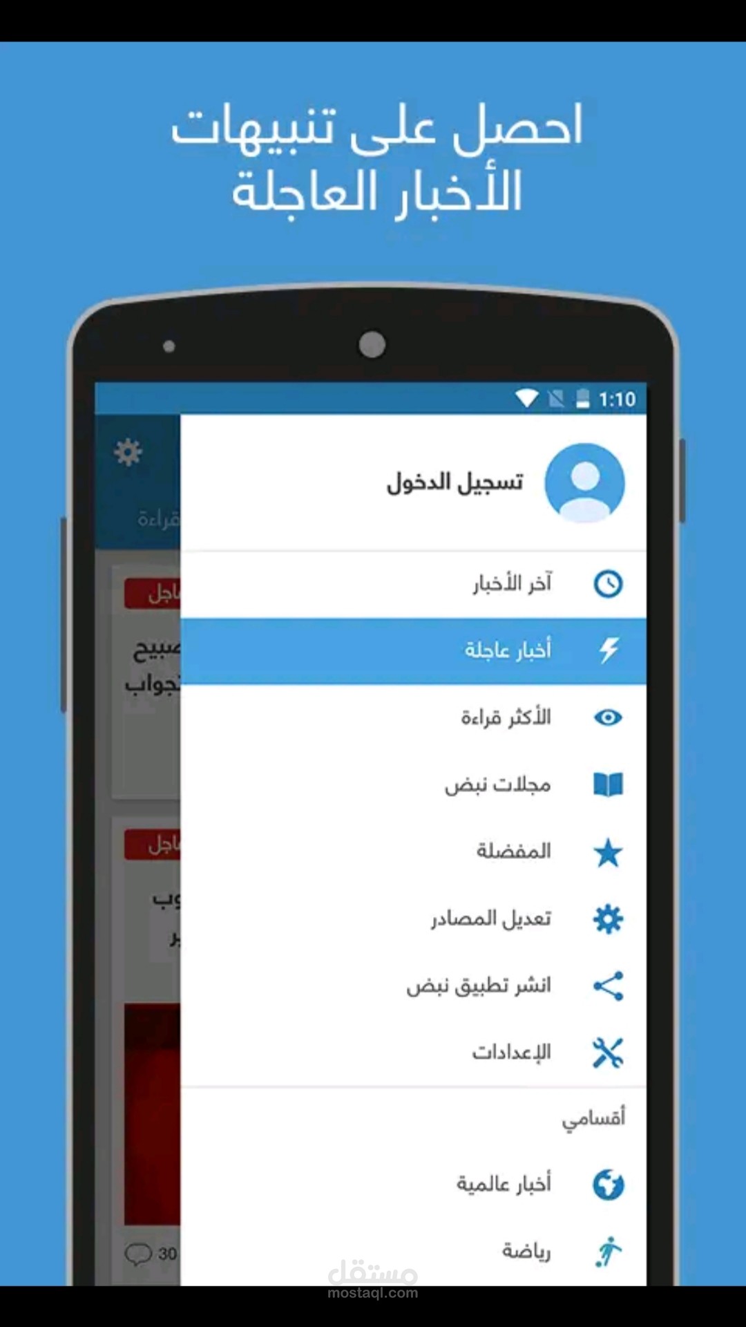 أكثر من ٢٣ مليون شخص يستخدم تطبيق نبض لمتابعة آخر الأخبار لحظة بلحظة، من المصادر المفضلة. كن أول من يعلم مع تطبيق "نبض" - أول تطبيق مجاني يقدم لك آخر الأخبار المحلية و العالمية و السياسية و الرياضية و التقنية و الصحية و النسائية من مصادرك المختارة، مع خاصية التنبيهات للأخبار العاجلة