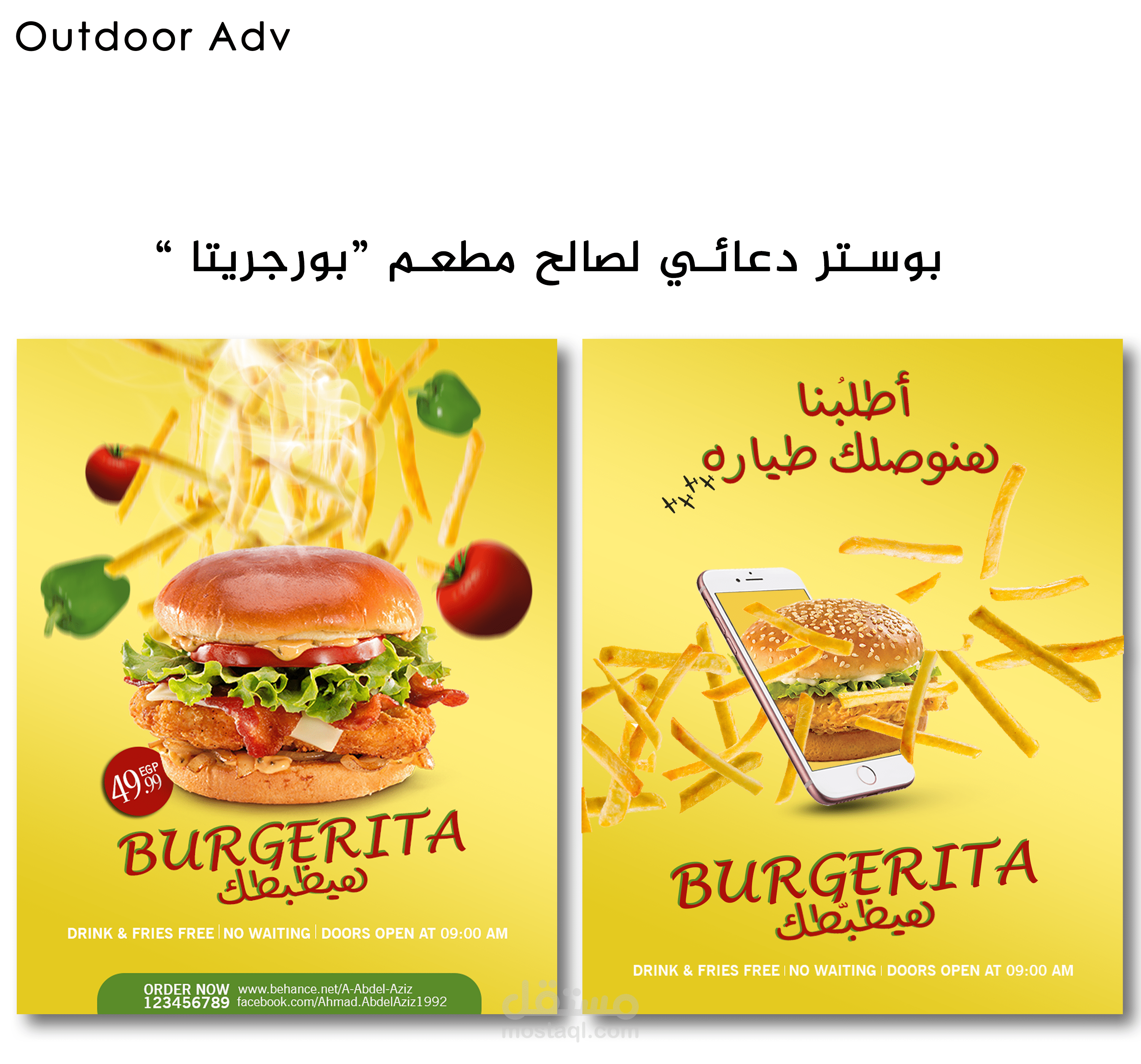 تصميم لوجو لصالح مطعم "بورجريتا" + 2 بوستر إعلاني