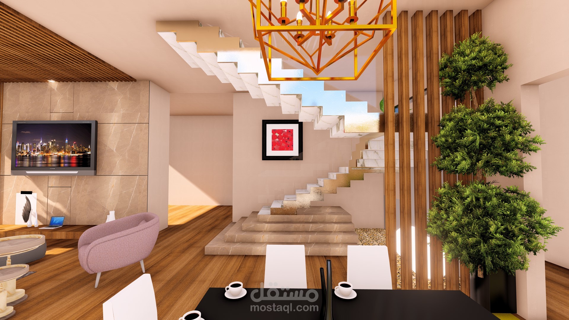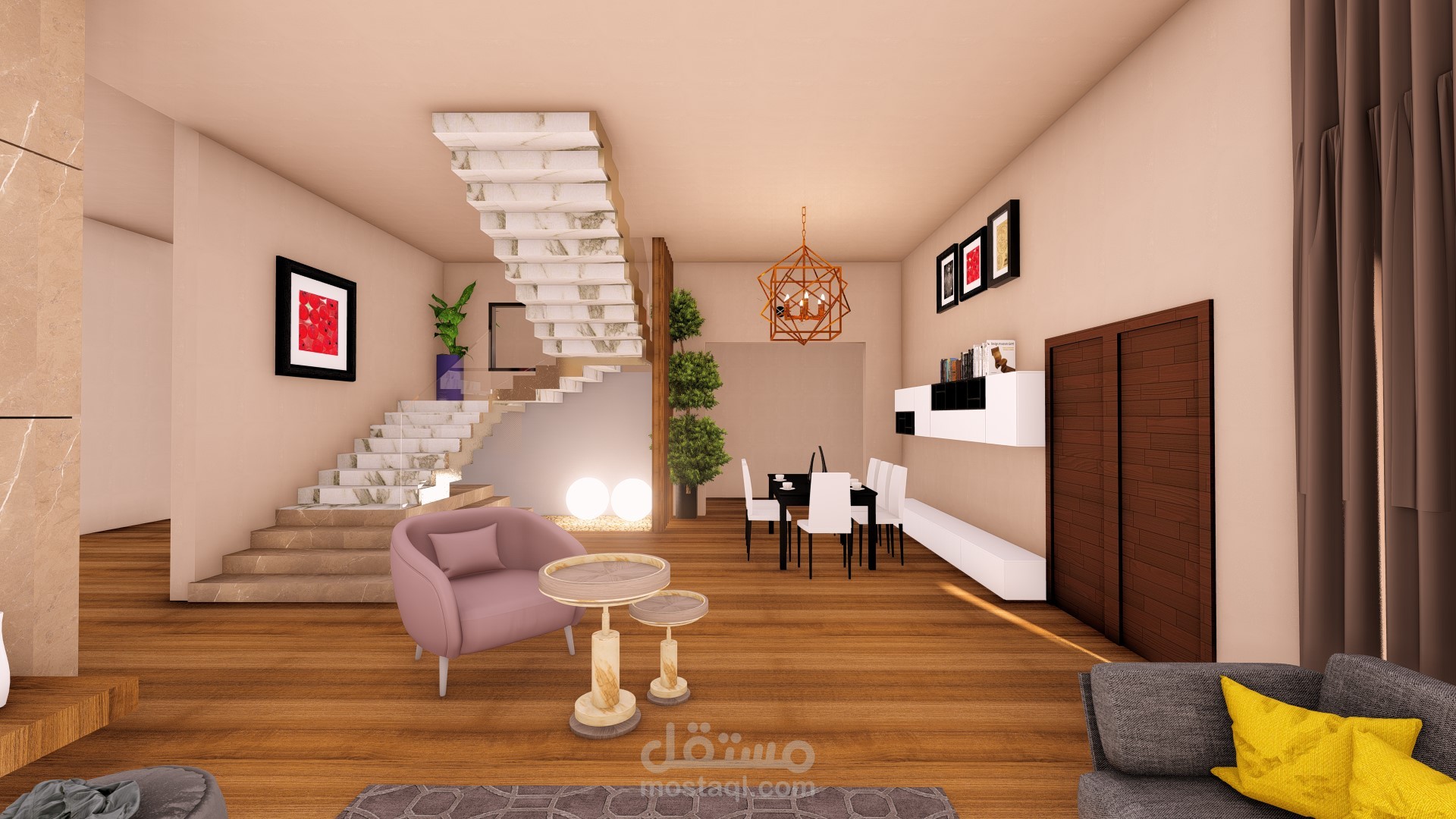 modern living+dinning room in KSA
