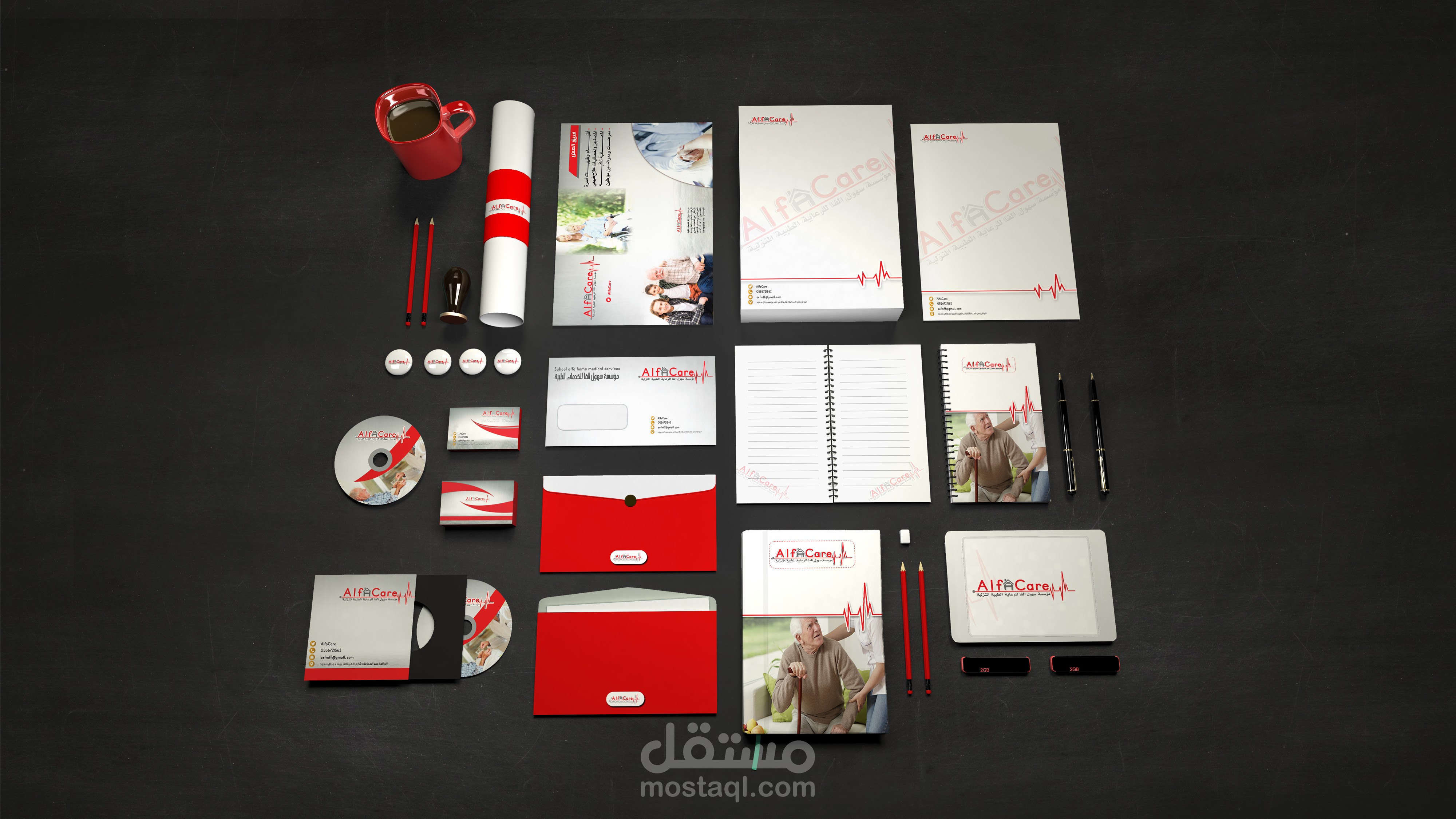 القرطاسيه :ورق مراسلات ،ختم ،كرت عمل ،CD ، ظرف أربع مقاسات ،مذكره A4-\A5