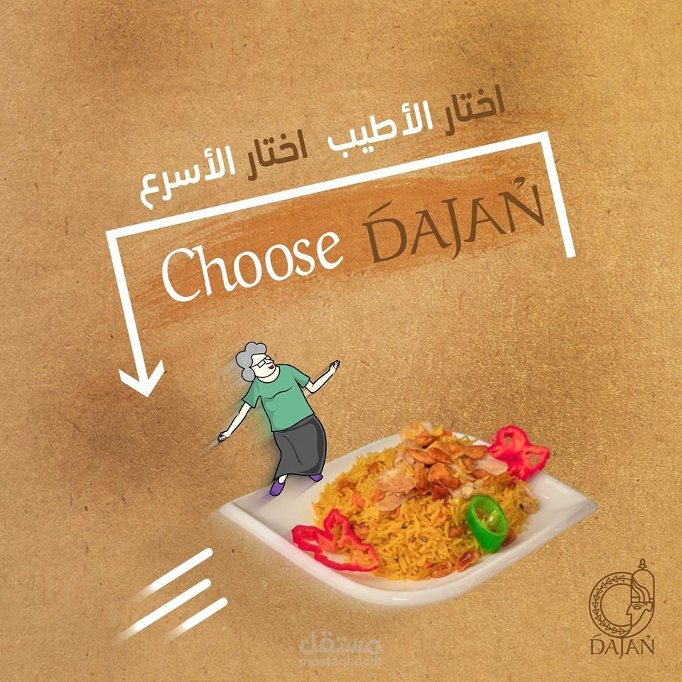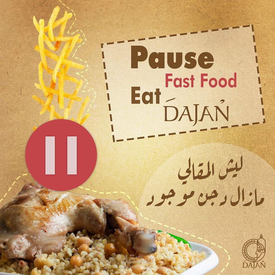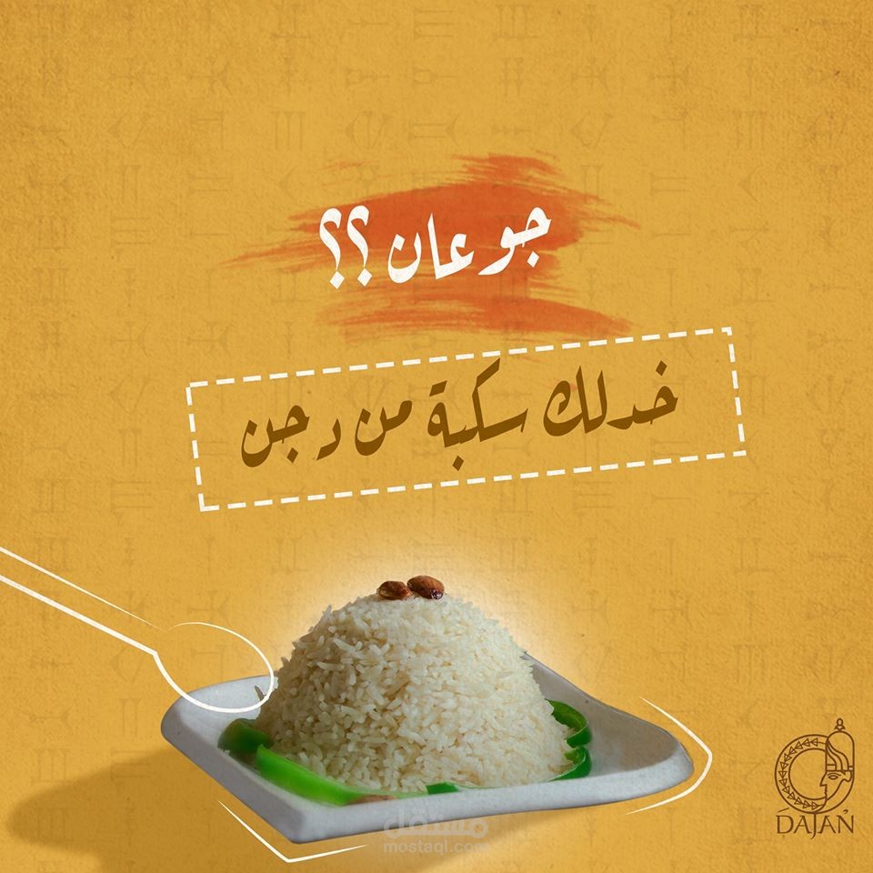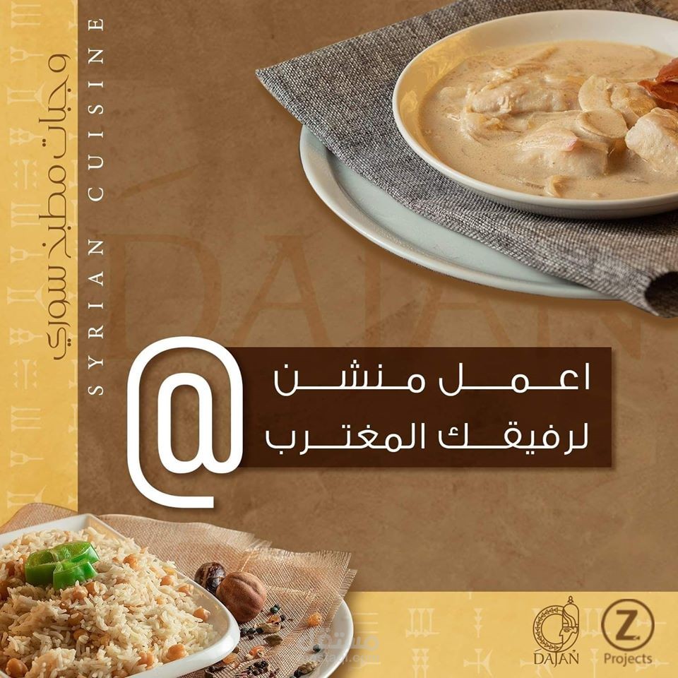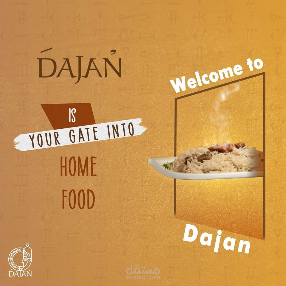 مجموعة بوسترات سوشيال ميديا لمطعم عربي سوري يقدم وجبات شرقية و اسمه دجن حيث تم جلب فكرة الاسم من اله الطعام السوري الذي كان اسمه دجن في زمن الاوغاريتيين