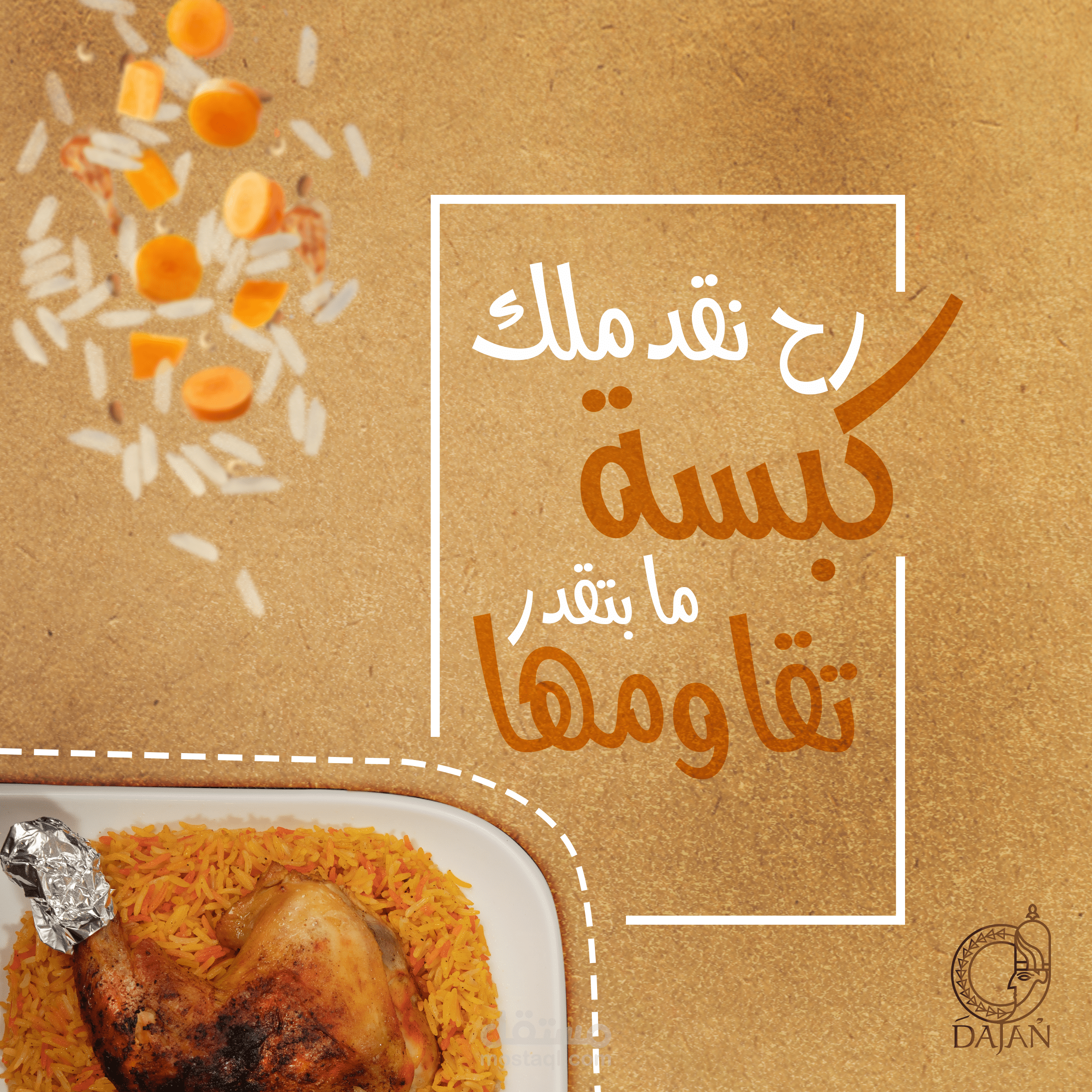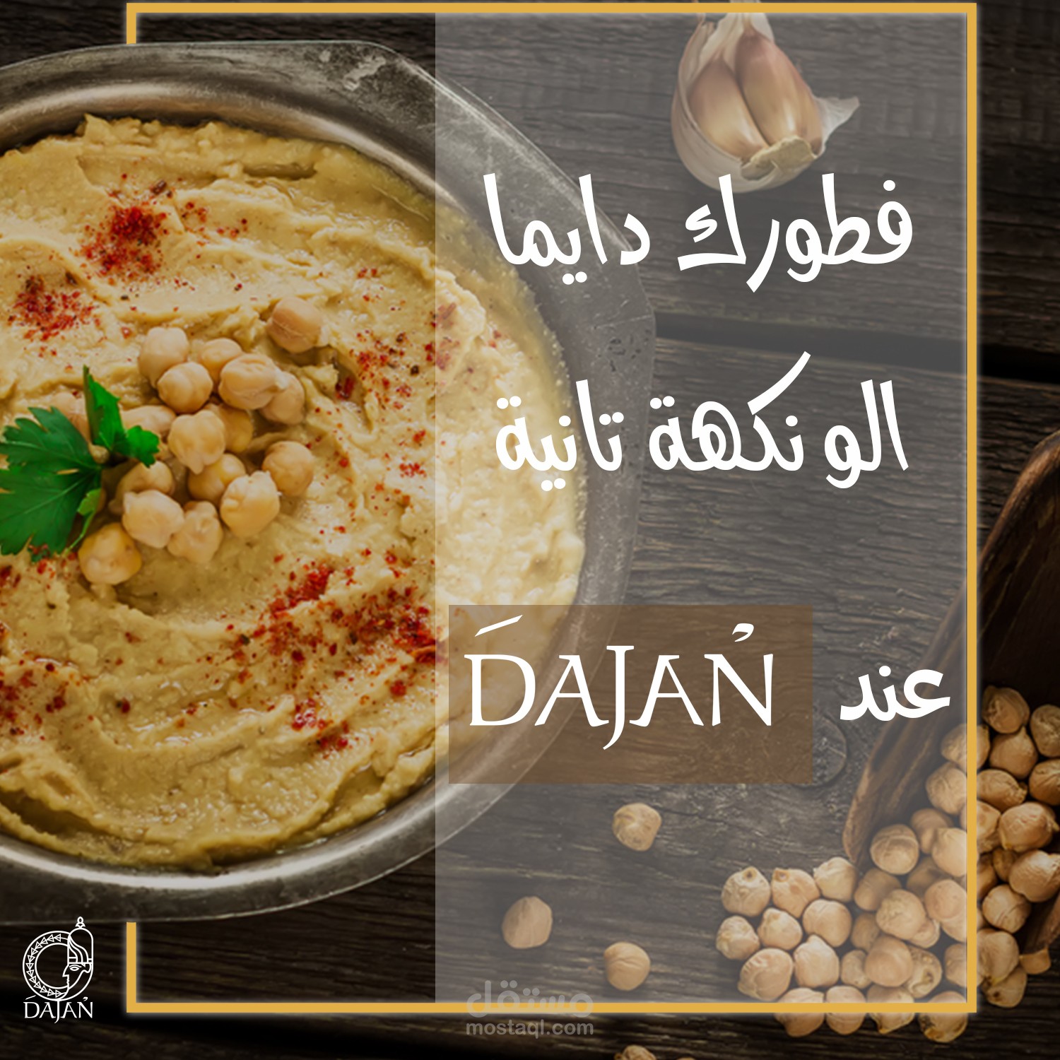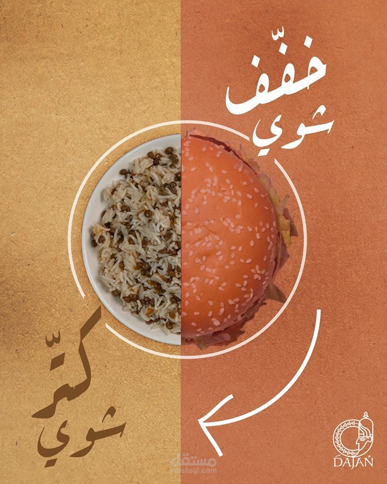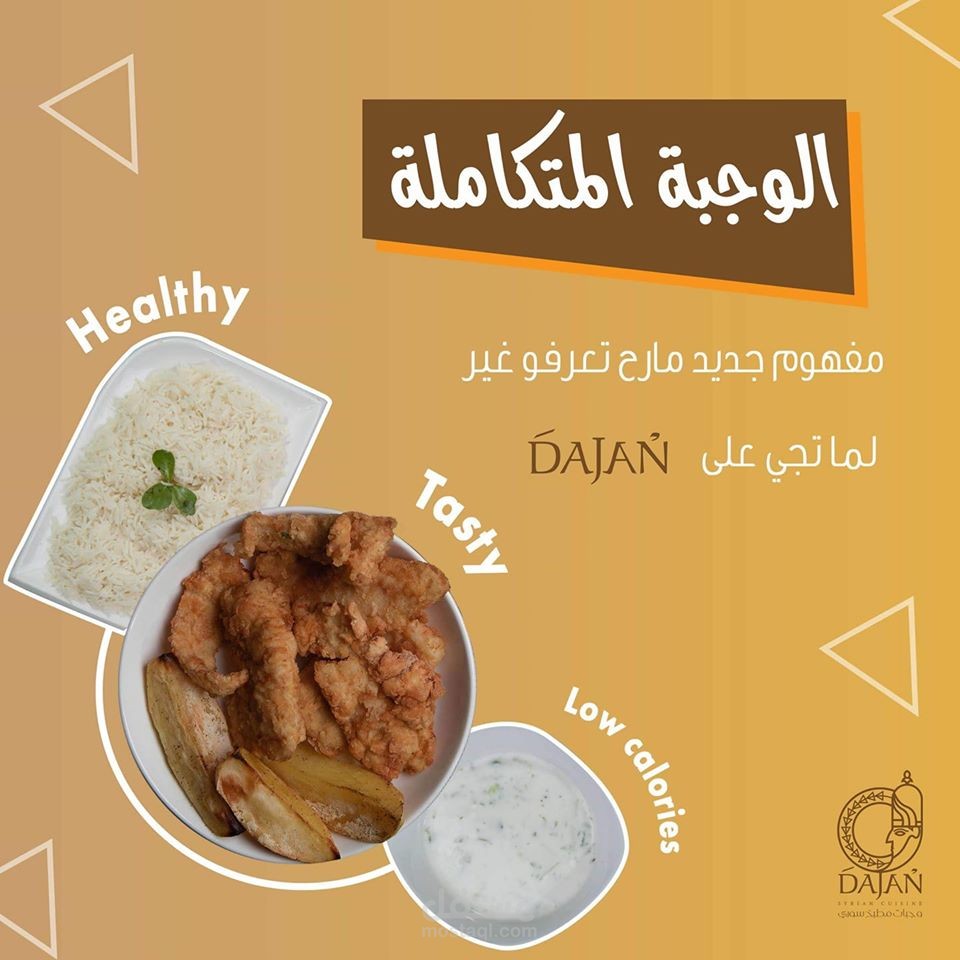 مجموعة بوسترات سوشيال ميديا لمطعم عربي سوري يقدم وجبات شرقية و اسمه دجن حيث تم جلب فكرة الاسم من اله الطعام السوري الذي كان اسمه دجن في زمن الاوغاريتيين