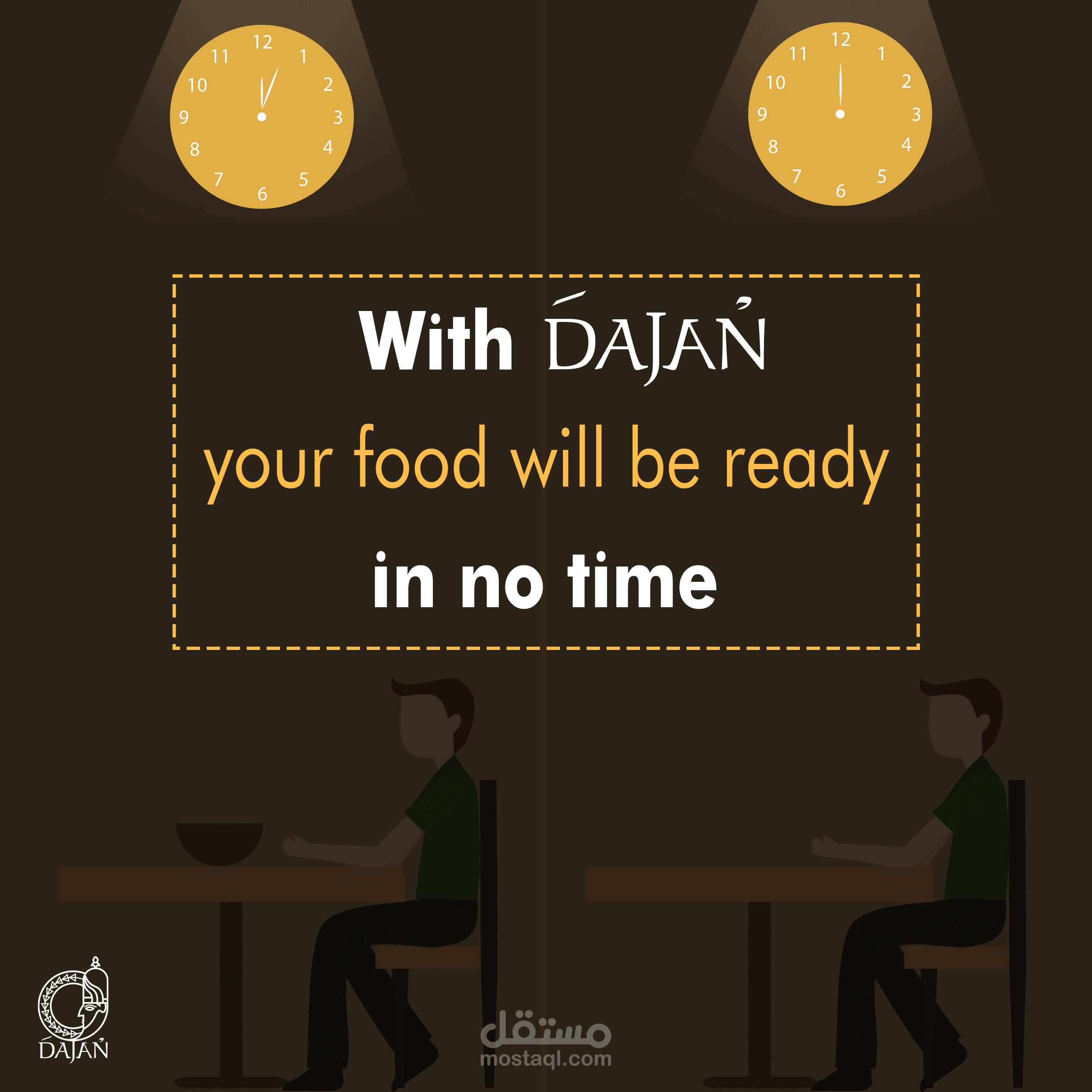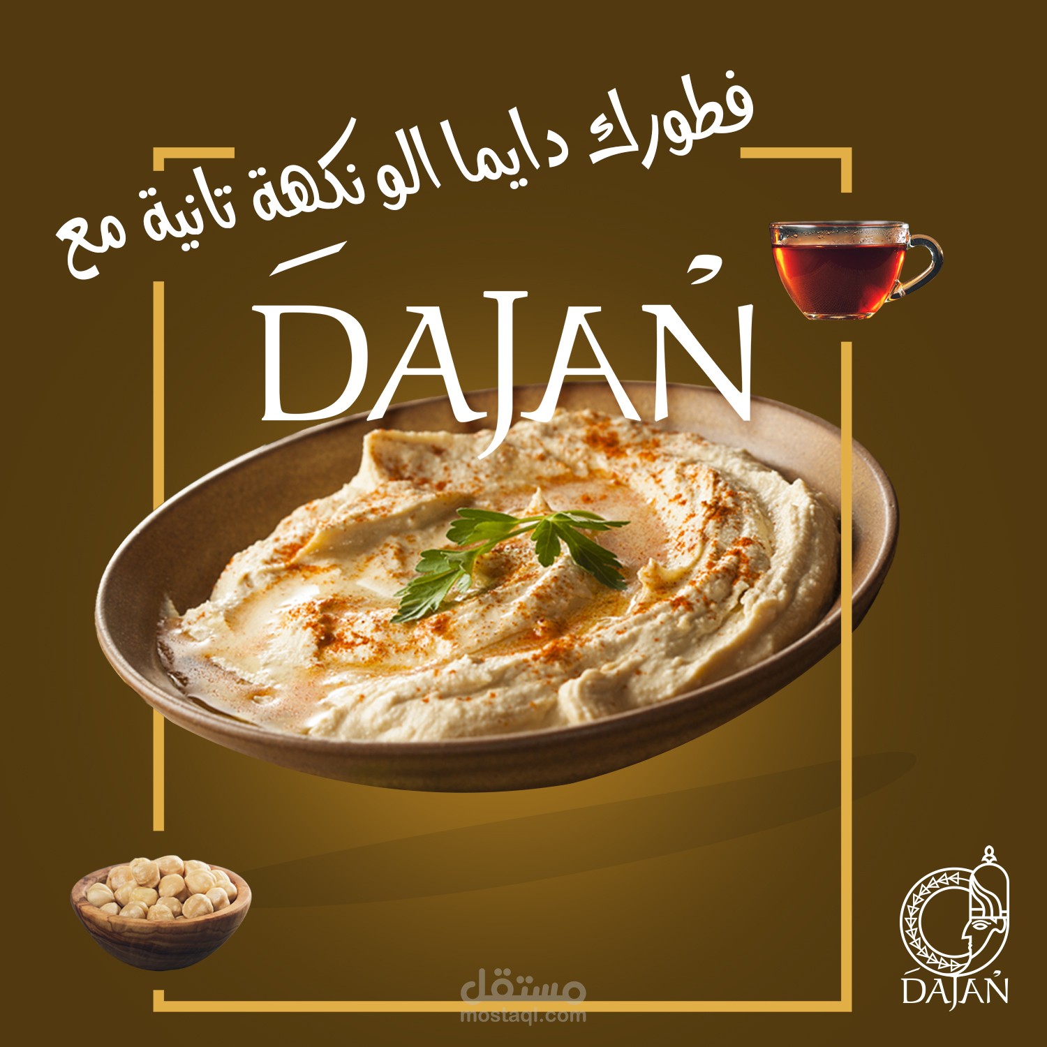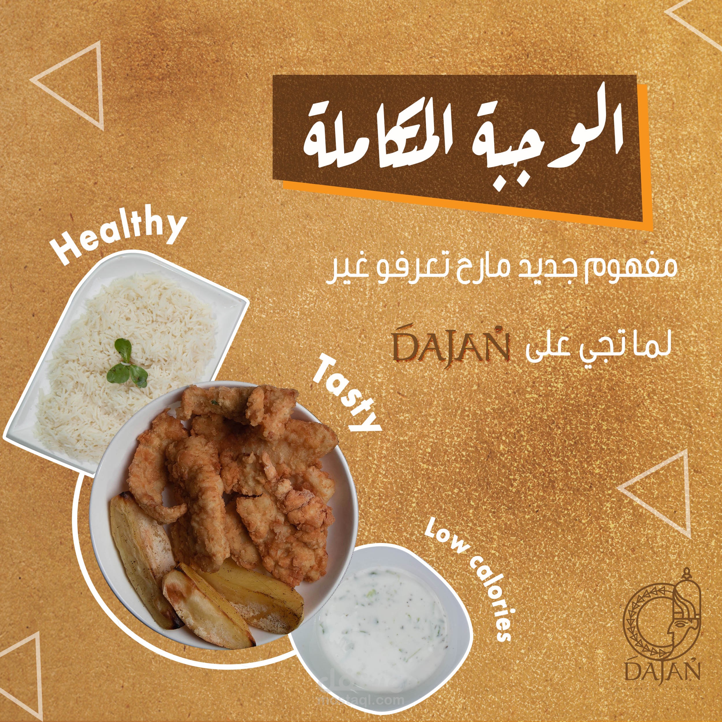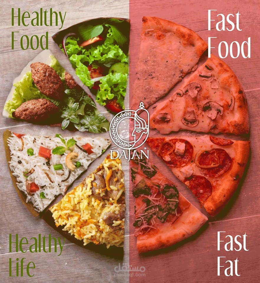 مجموعة بوسترات سوشيال ميديا لمطعم عربي سوري يقدم وجبات شرقية و اسمه دجن حيث تم جلب فكرة الاسم من اله الطعام السوري الذي كان اسمه دجن في زمن الاوغاريتيين
