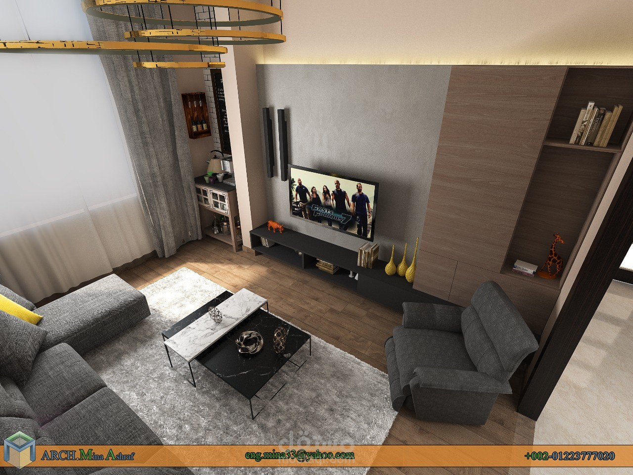 تصميم living room ببرنامج الثرى دى ماكس وجارى تنفيذها