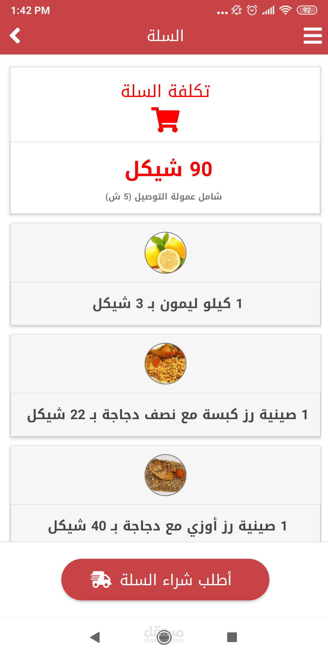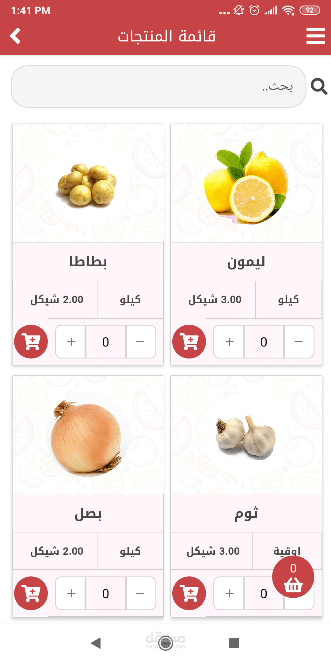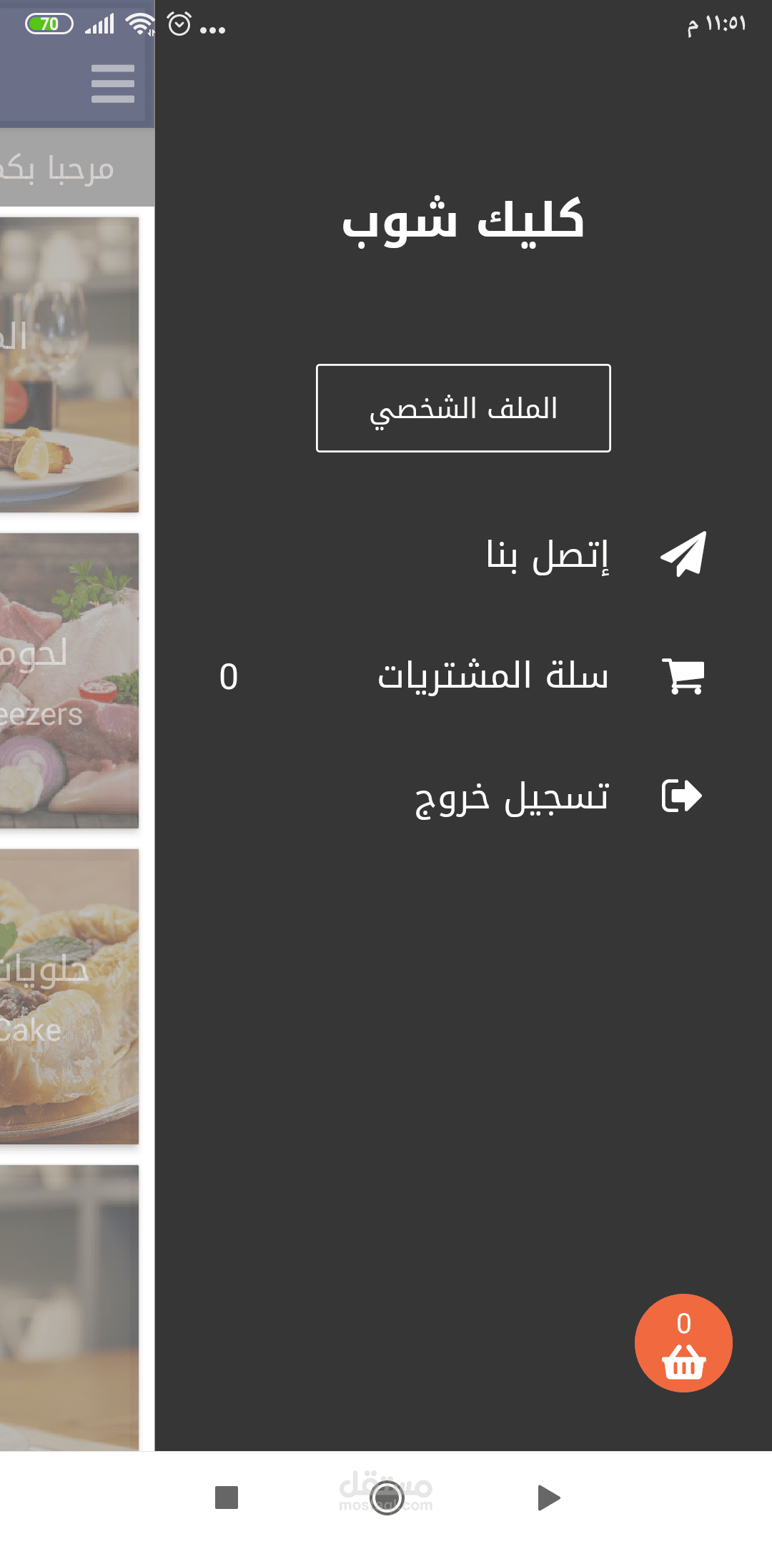 تطبيق للتسوق الالكتروني .. منتجات مطاعم .. لحوم .. يقوم المستخدم بتسجيل الاشتراك وتصفح جميع الاقسام لشراء منتج او العديد من المنتجات ..