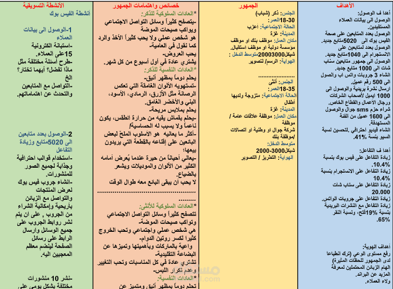 وهذخ صورة مقتطعة من خطة تسويقية لمحل ملابس