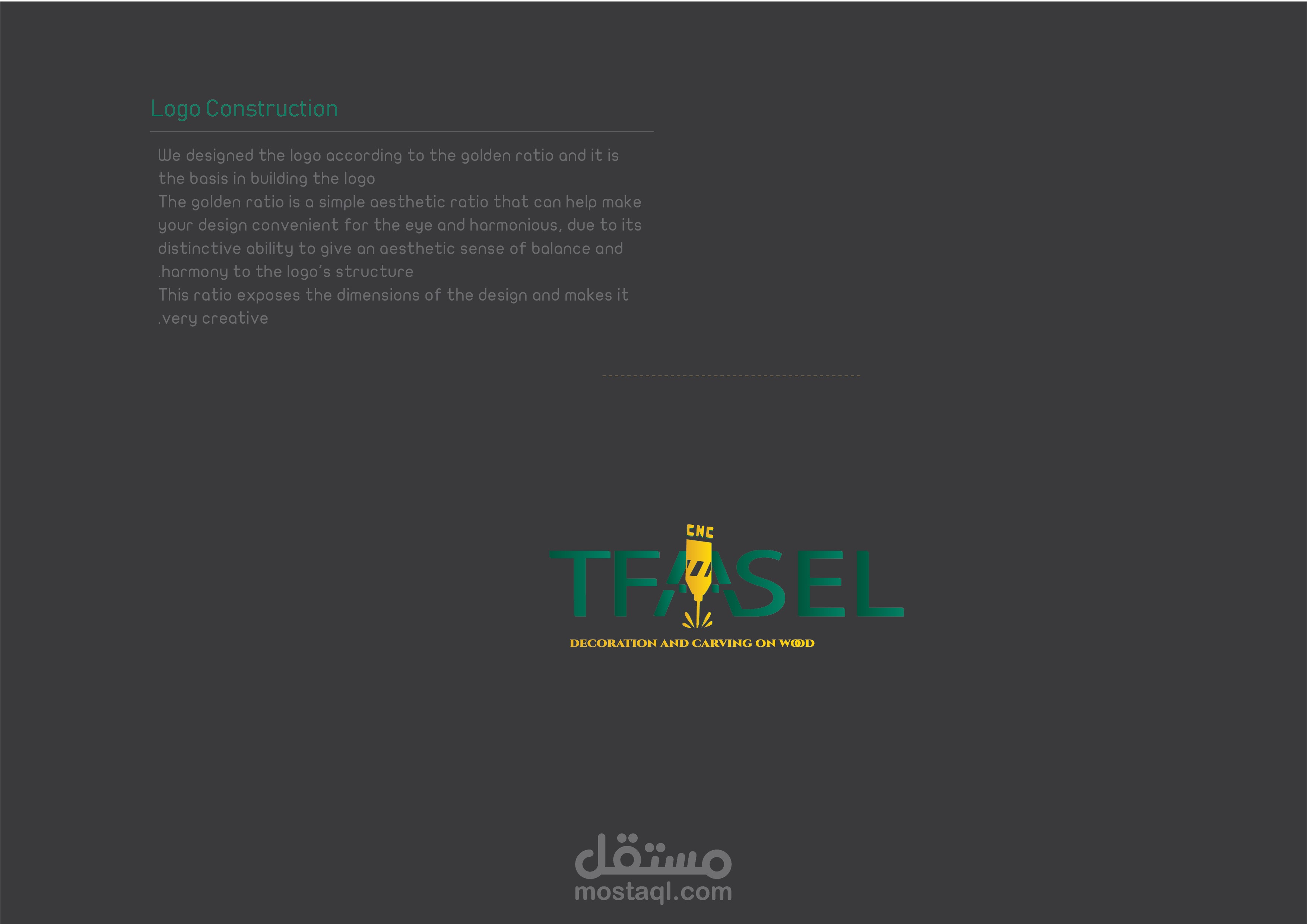 قمت بتصممي الشعار بناء على خاصية تسمى #النسبة_الذهبية وهي تعمل على اعطاء الشعار جمالية واناقة في التصيم .