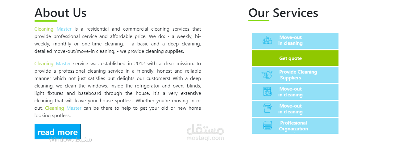موقع إلكتروني متخصص لبيع مواد التنظيف وعرض طرق النظافة التقليدية والمناسبة لكل جانب مع تقديم النصائح اللازمة