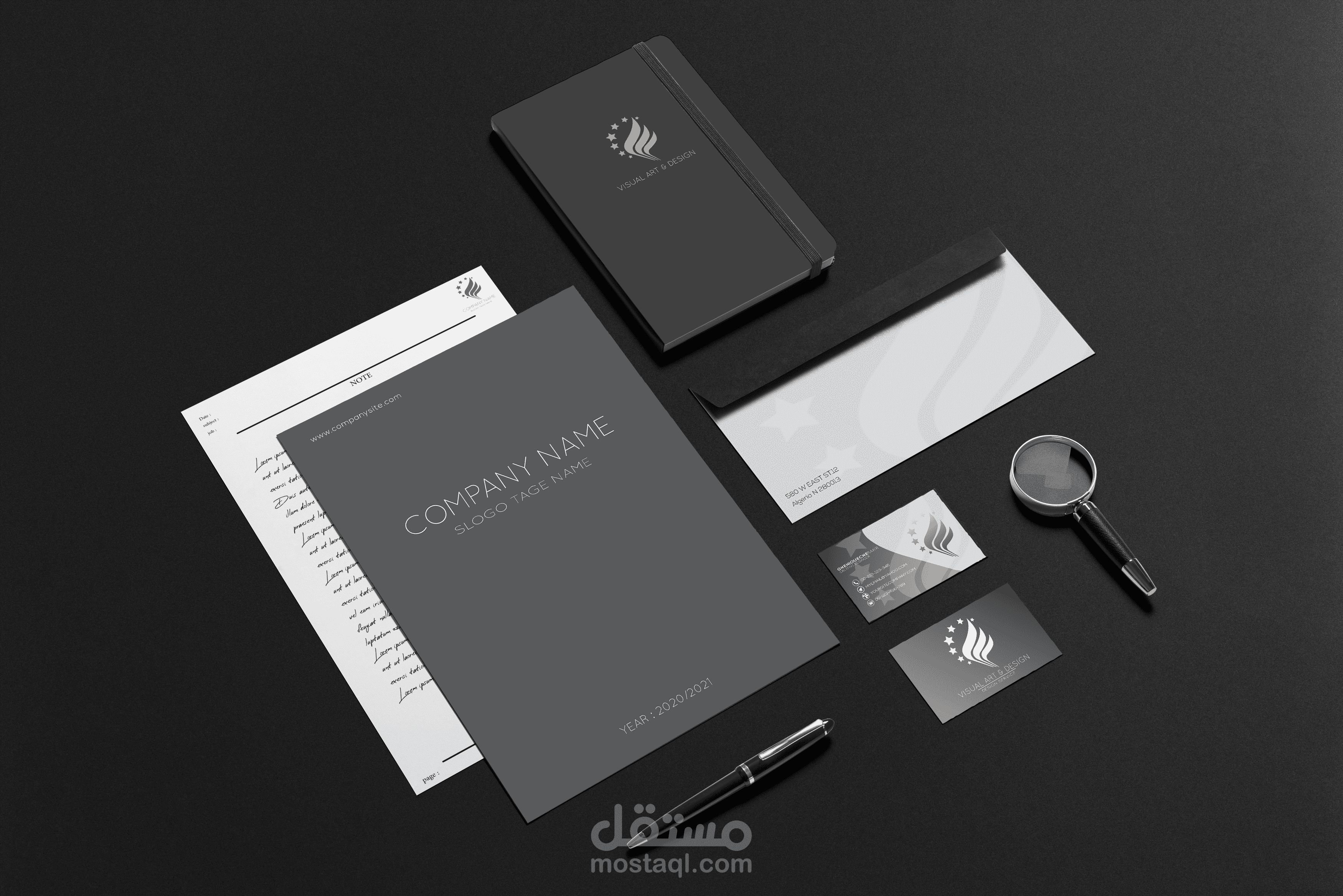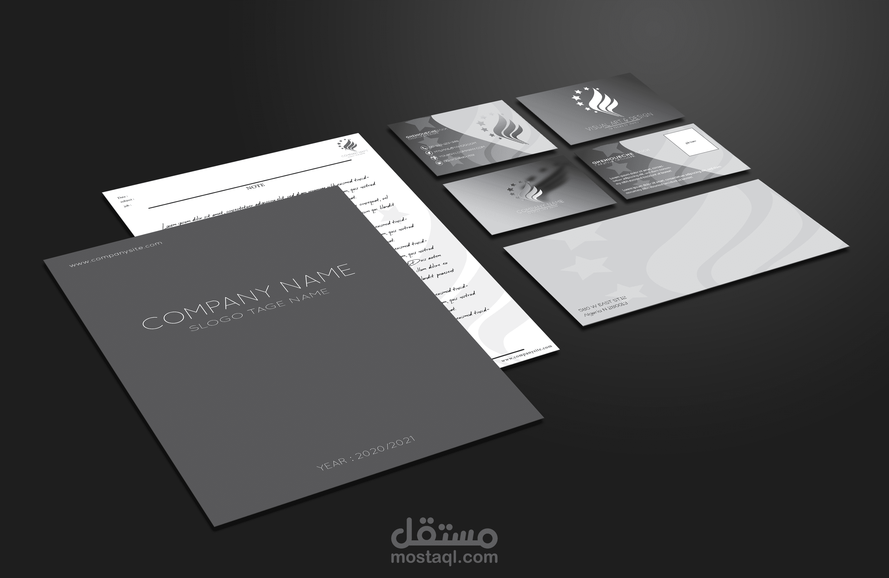 هوية العلامة التجارية المهنية بلون الاسود والرمادي تضم