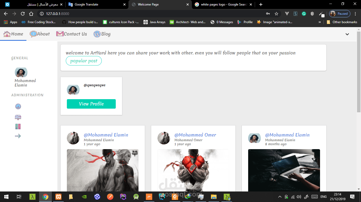 the web application allows you to share your artwork with others and follow specific user and comment on specific work and