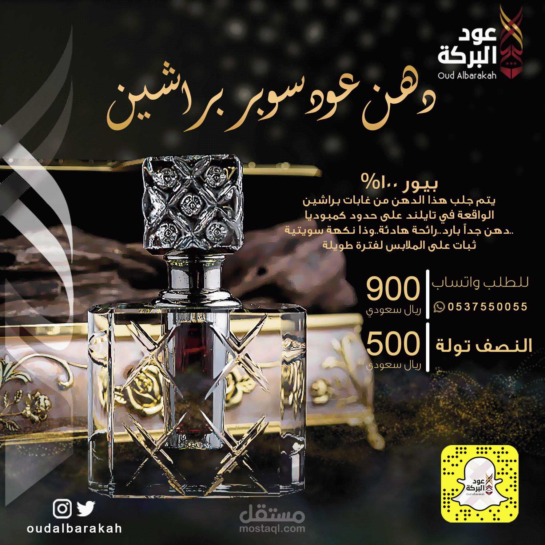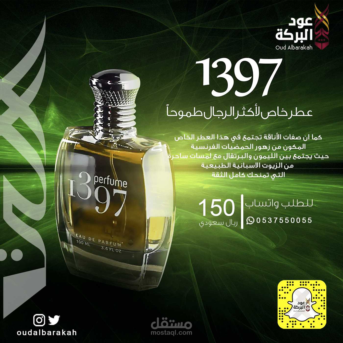 تصميم بوسترات سوشيال ميديات لشركة عود البركة من خلال شركة (جرافيكس)