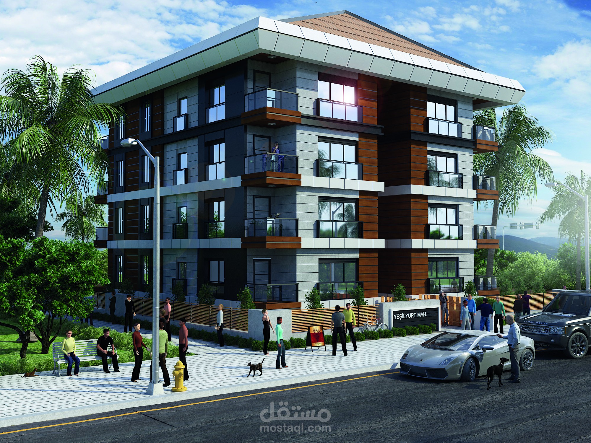 تصميم مبنى سكني في اسطنبول مع المناظير الداخليه والخارجية والبلانات