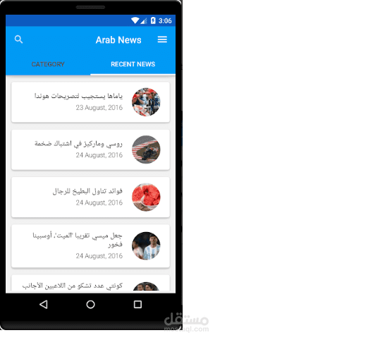تطبيق أخباري لأجهزة الأن\لاويد مع لوحة تحكم سلسة جداً للمدير (صاحب التطبيق) ليقوم بتنزيل أخر الأخبار مع التحكم بكامل التفاصيل والتعديل والحذف واضافة التنيفات الأخبارية والتعديل عليها يدعم الاعلانت من شركة غوغل Google Admob والاعلانات من شركات أخرى للربح.