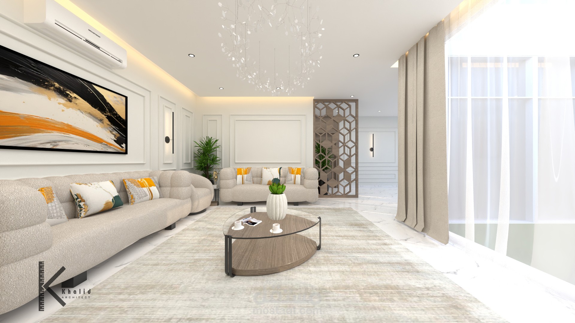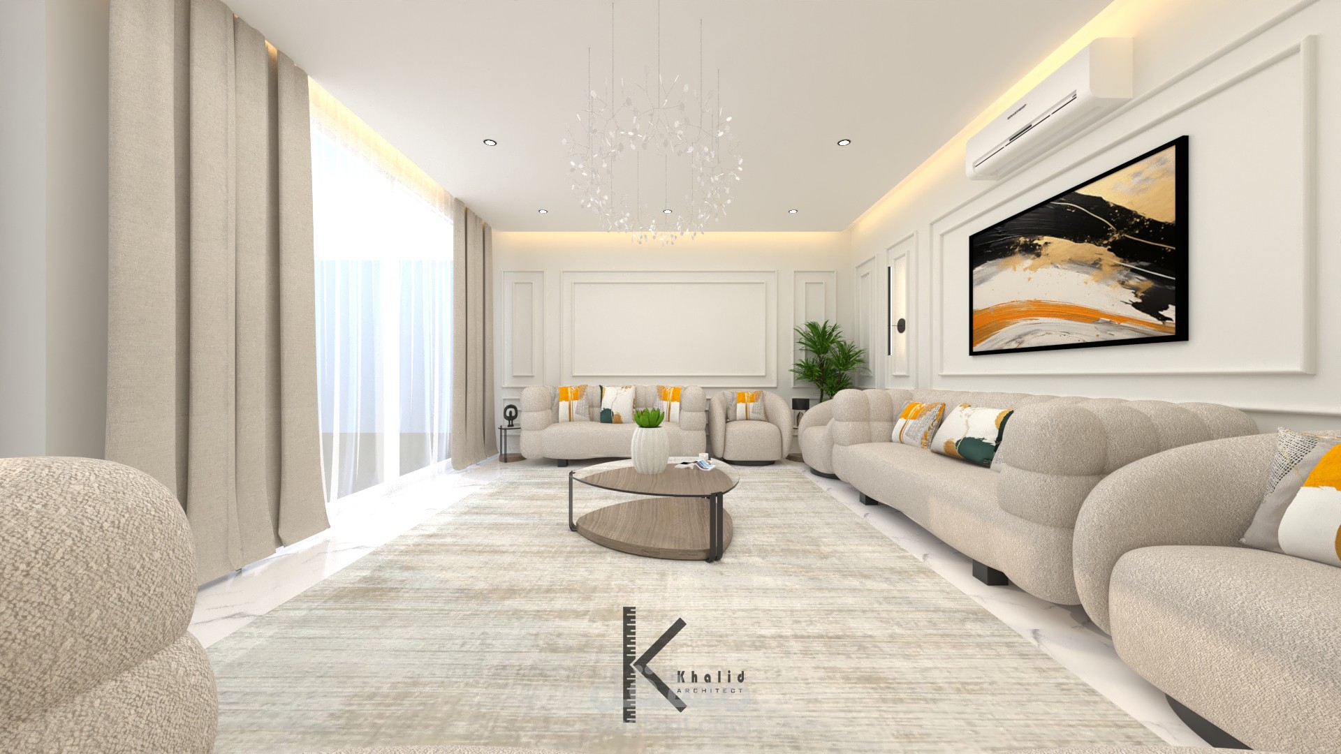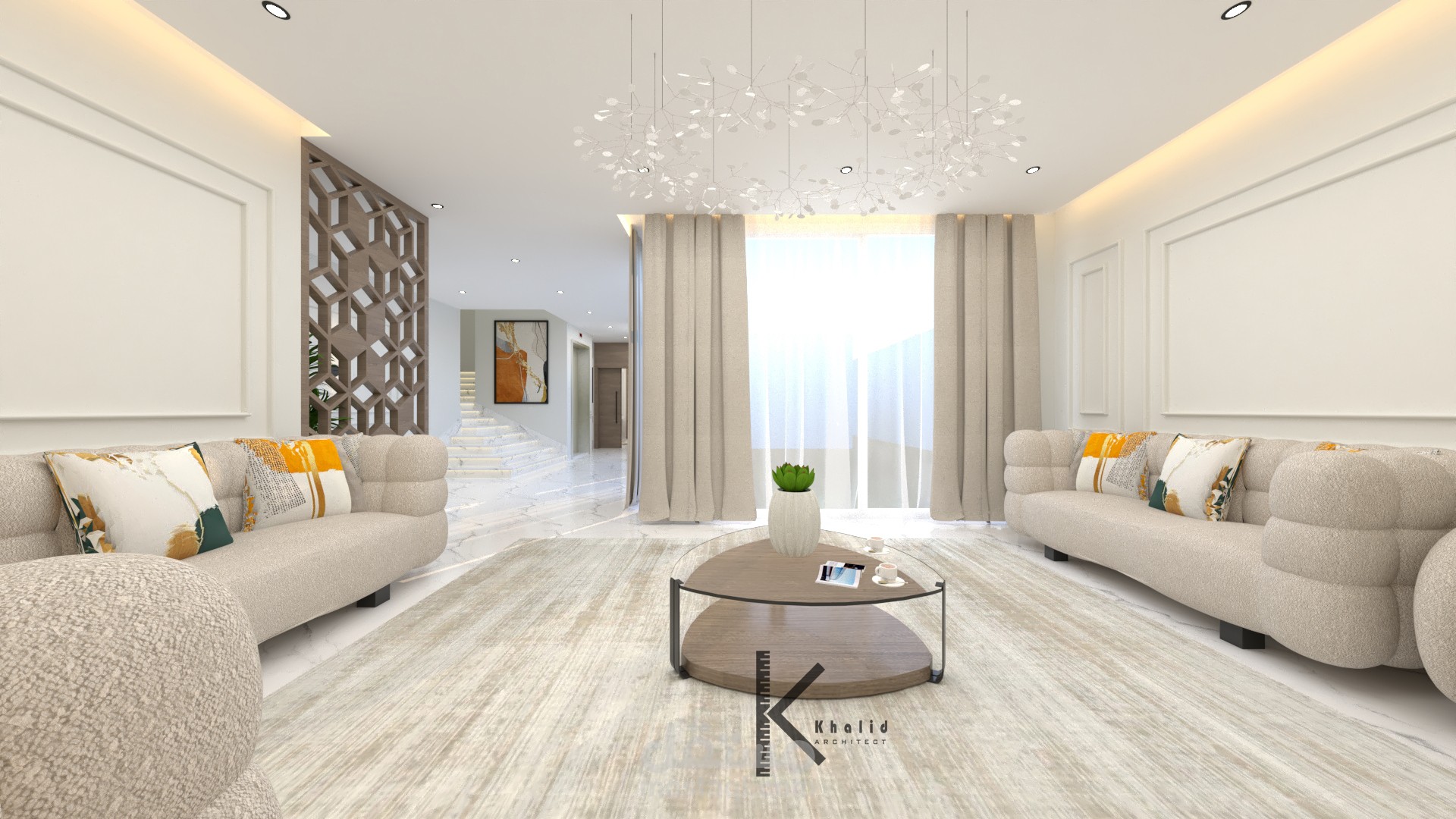 تصميم داخلي صاله عائليه طراز نيو كلاسيك وتم تجهيز رسومات تنفيذية كامله للمشروع