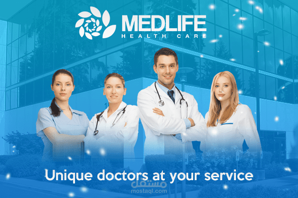 MedLIFE مركز علاجى يحتوى على 6 تصميمات للسوشيال ميديا + لوجو + شرح الفكره