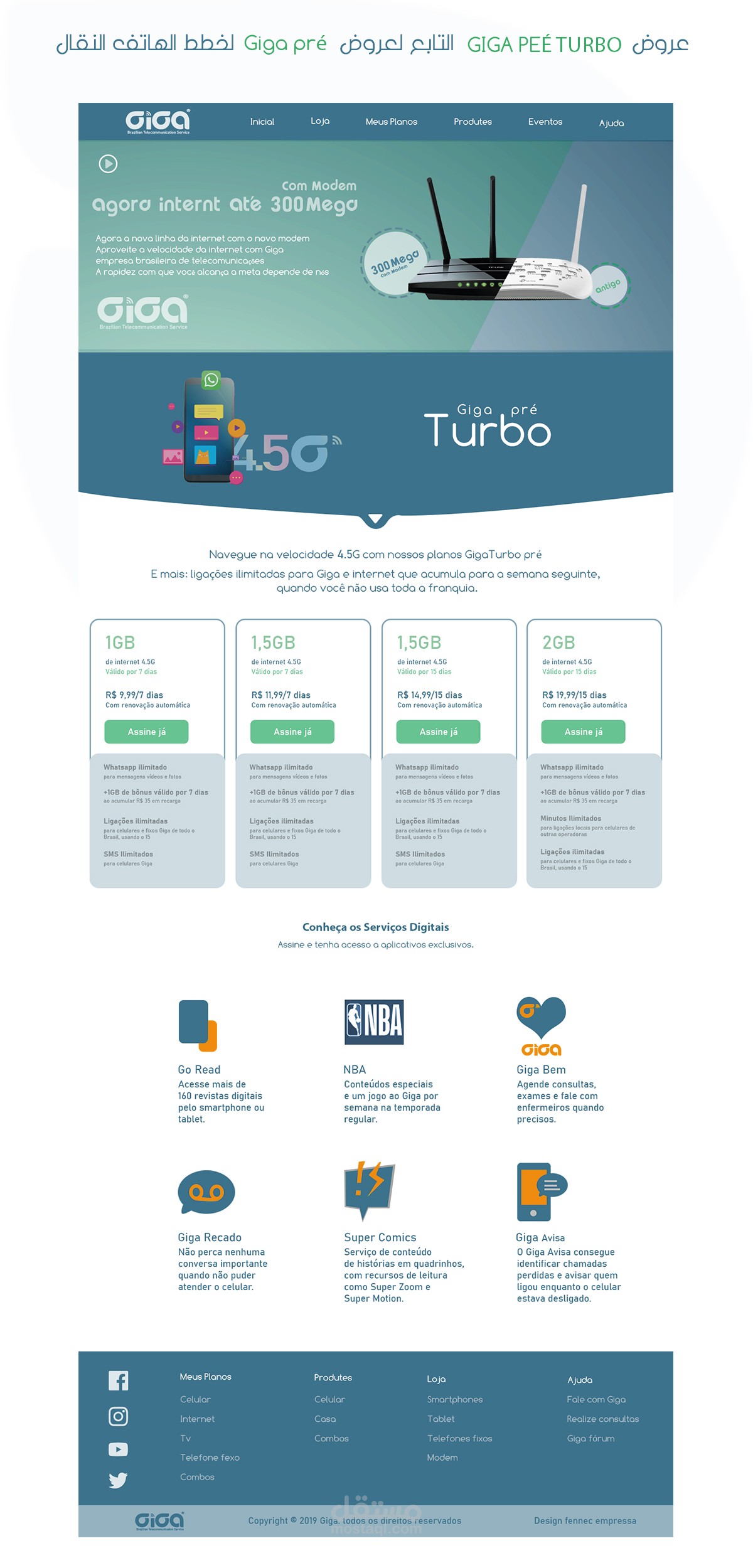 جيغا عبرة عن وكالة تجارية برازيلية تقدم خدمات الاتصالات والانترنت تمتع معنا بافضل الباقات والعرض على مستوى البلد جيغا دائما في خدمتكم