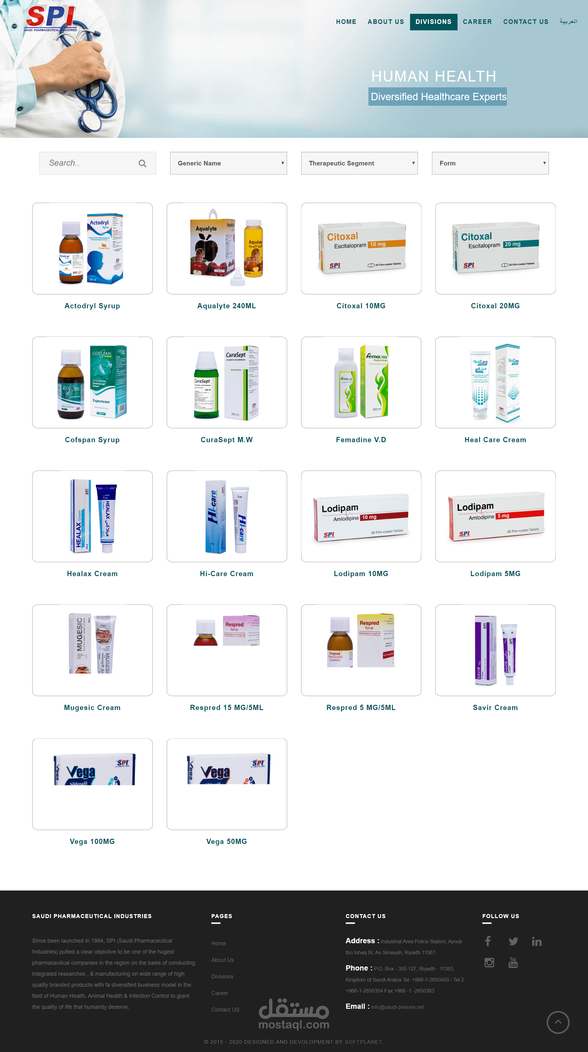 تصميم وتطوير موقع ويب متخصص في تقديم مجموعة واسعة من المنتجات ذات العلامات التجارية عالية الجودة ذات النموذج التجاري المتنوع للرعاية الصحية في مجال صحة الإنسان صحة الحيوان ومكافحة العدوى.