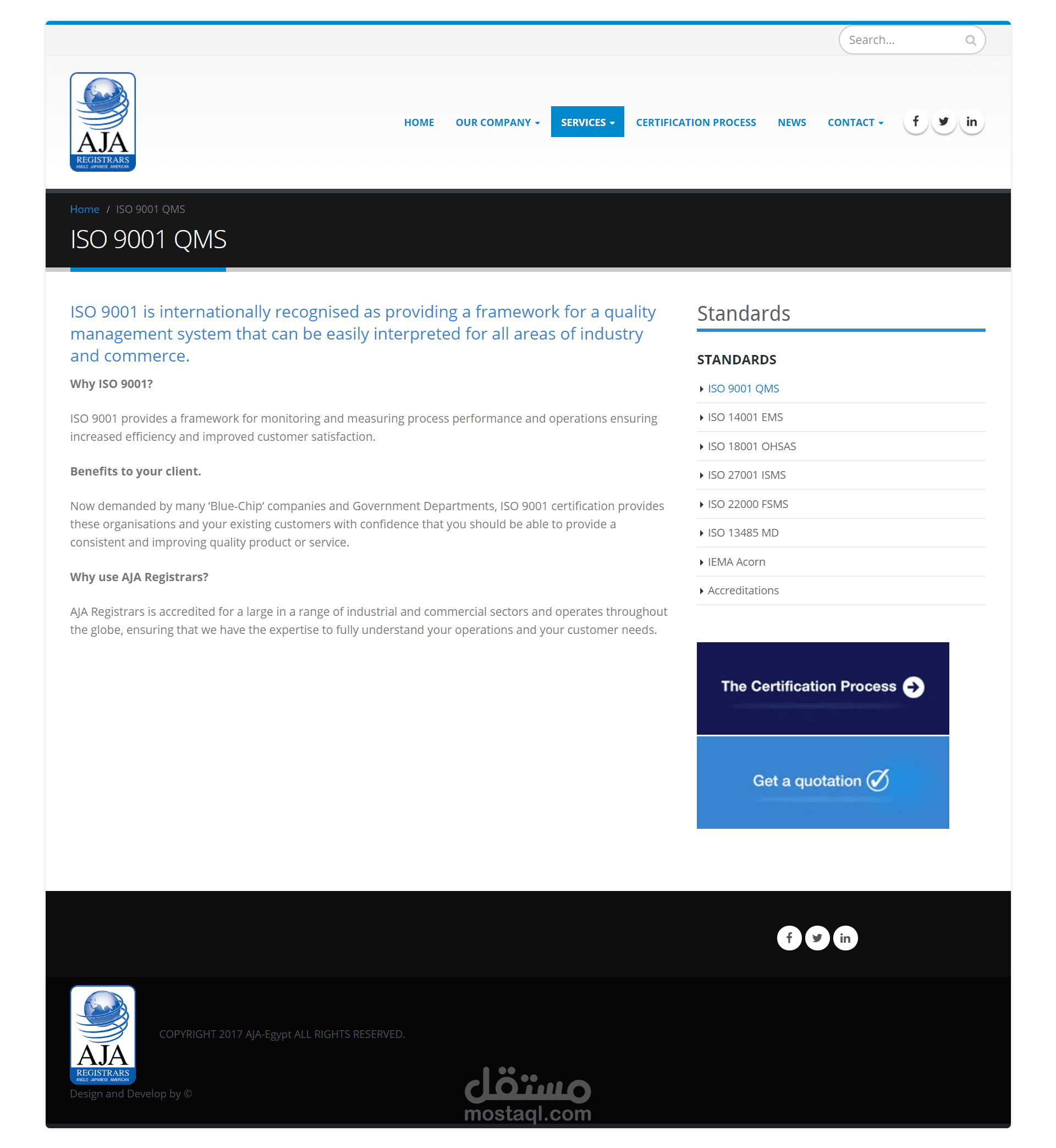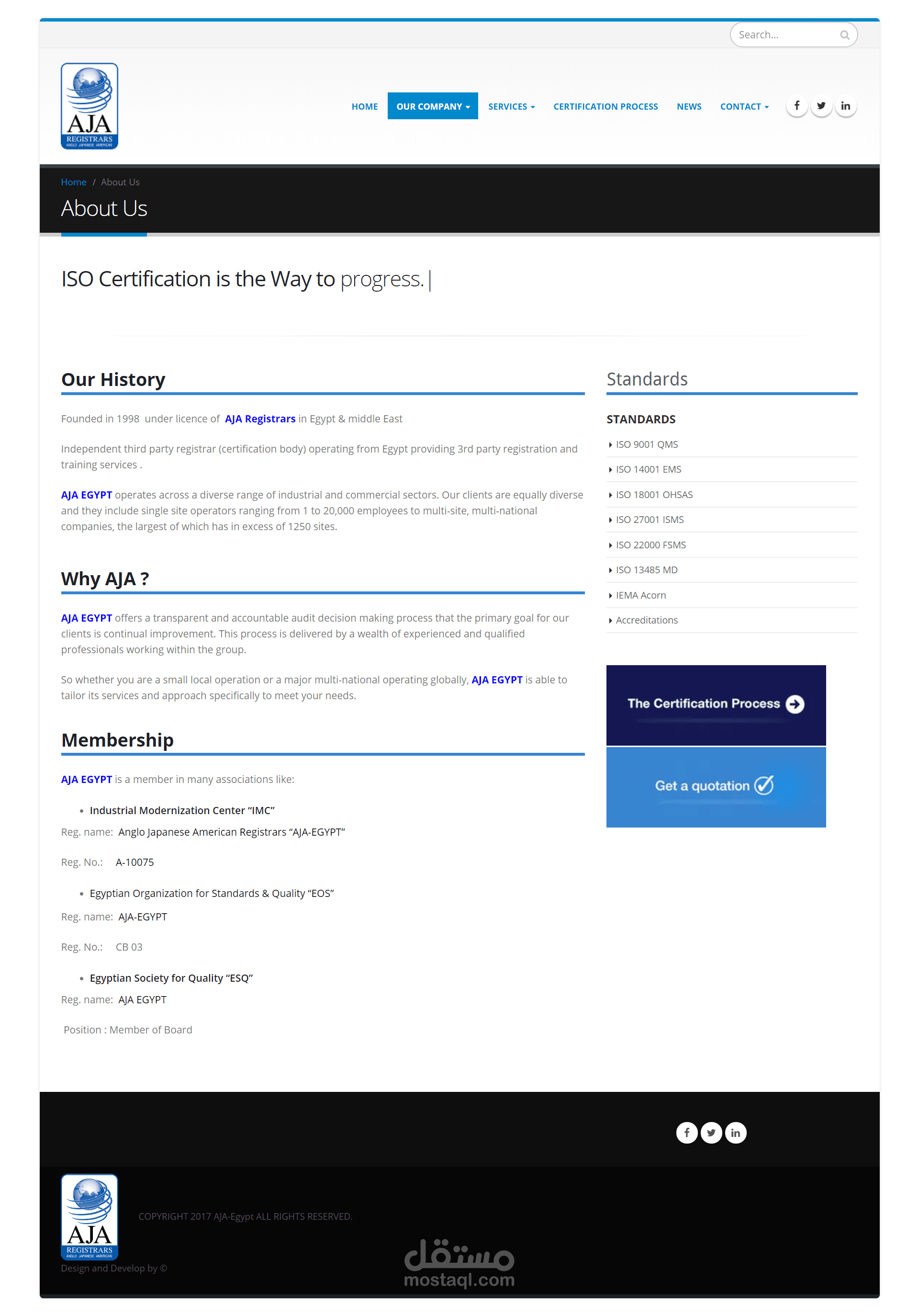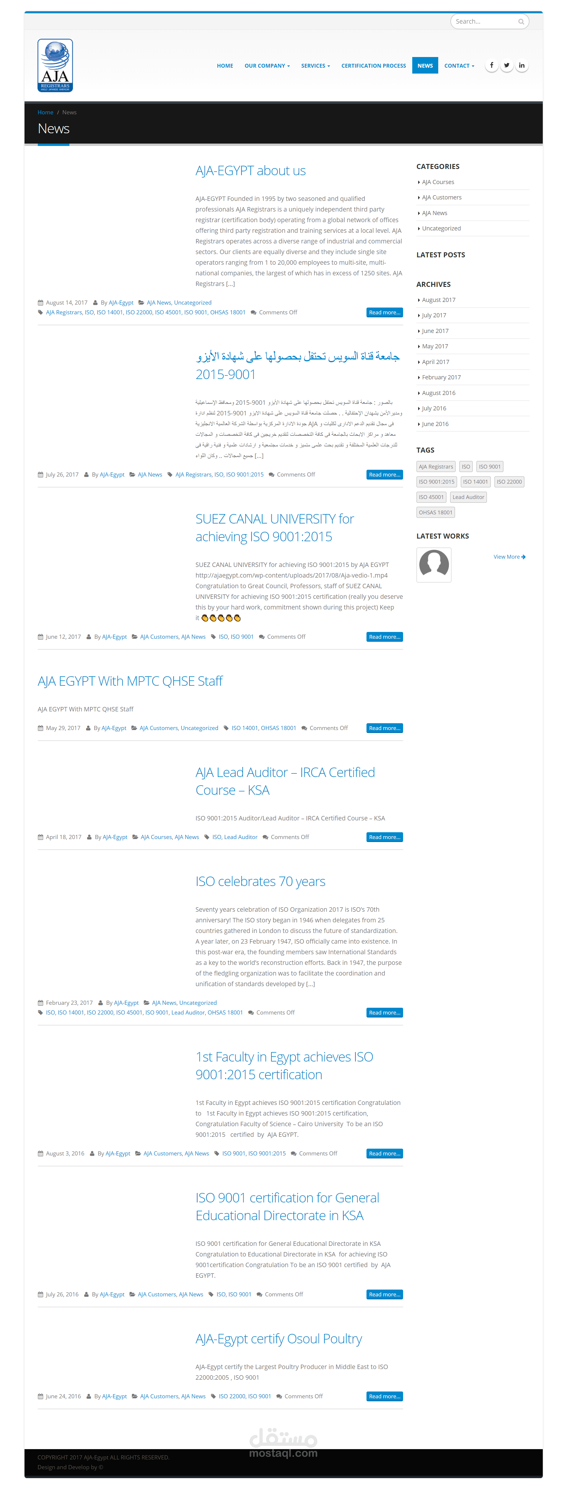 تصميم وتطوير موقع AJA EGYPT باستخدام (WordPress)