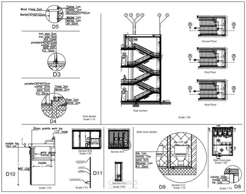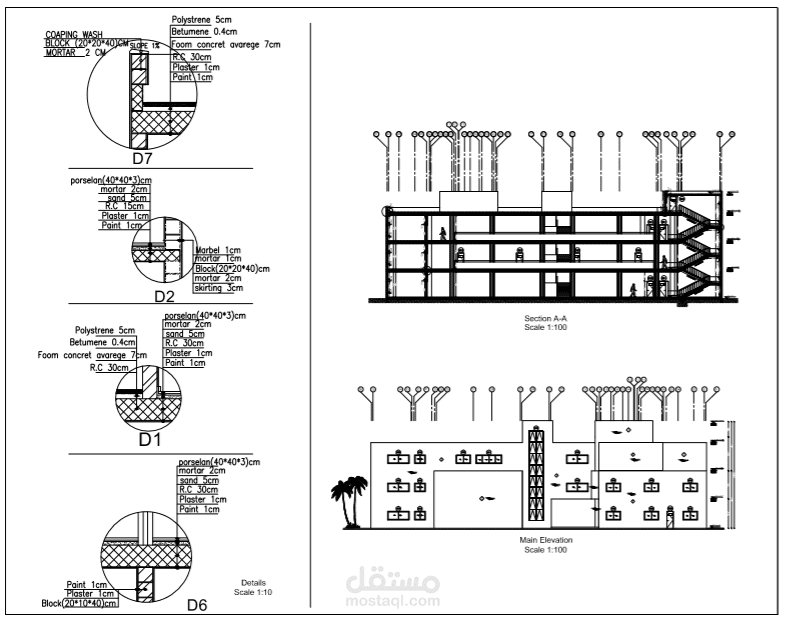 تصميم مخططات معمارية مع بعض الرسومات التنفيذية لمدرسة .