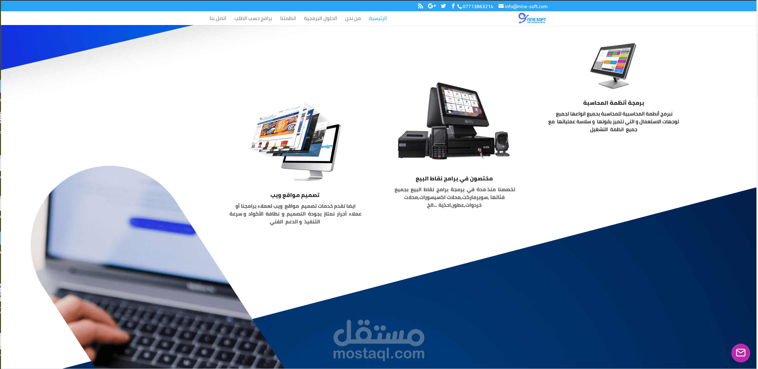قمت بتصميم و برمجة موقع ويب لشركة ناين سوفت العراقية لبيع كمبيوترات و اجهزة نقاط البيع و برمجة البرامج