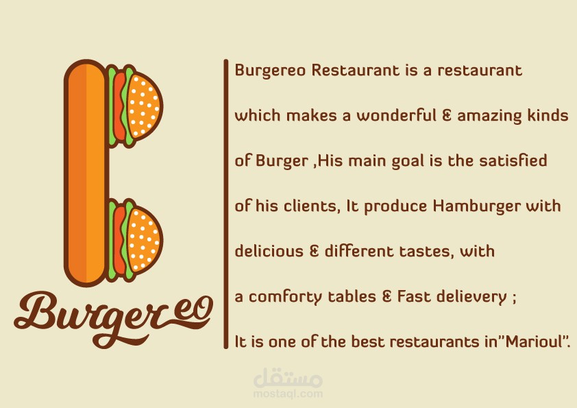 السلام عليكم , مرحباً بكم في معرض أعمالي المتواضع : ) I آخر أعمالي في تصميم الشعارات والهويات التجارية... براند جديد متكامل من تصميمي لمطعم أجنبي جديد"Burgereo" ^_^ لا تنسوا الضغط على زر الإعجاب من فضلكم للتشجيع وشكراً..