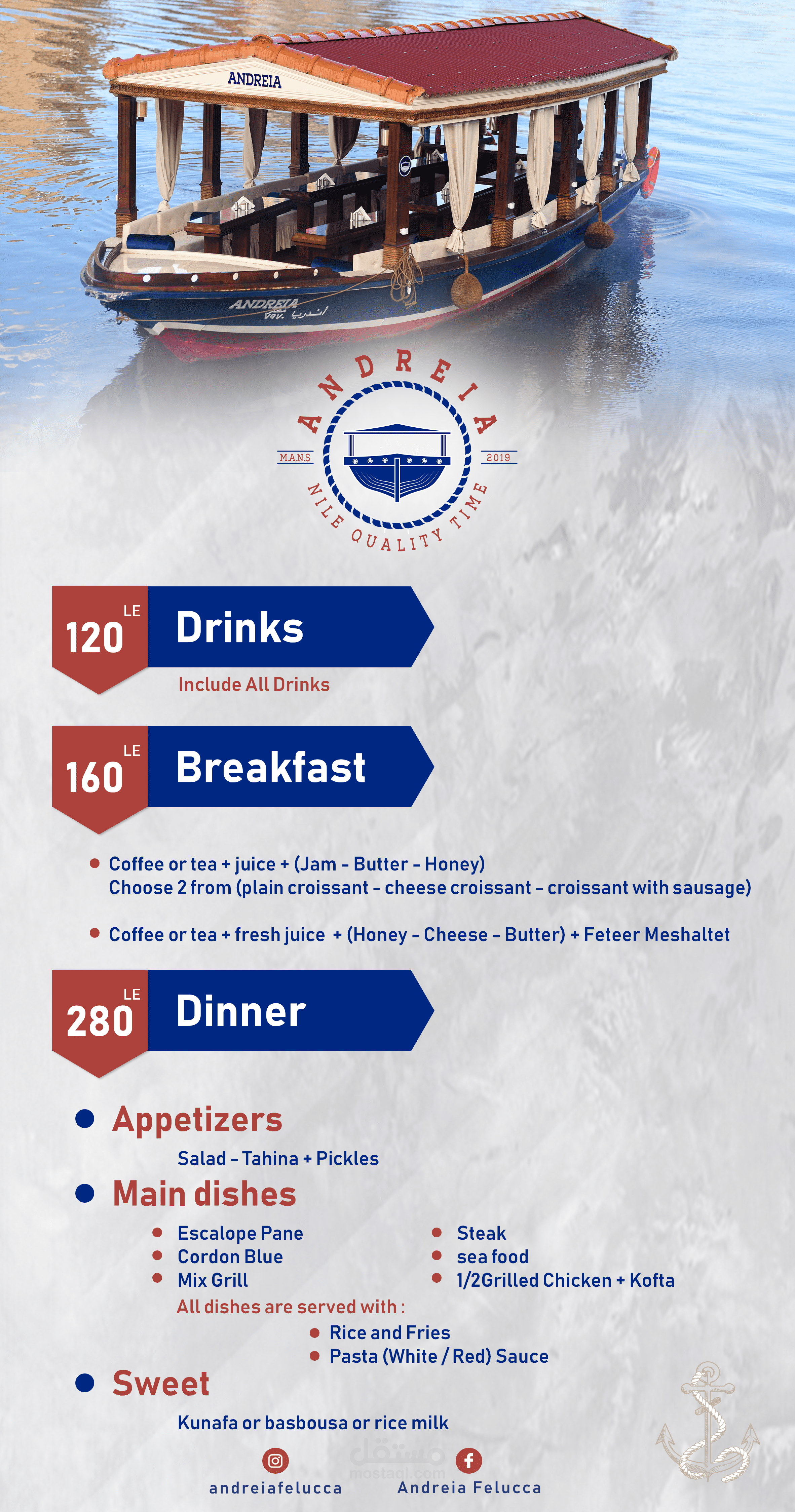 مينيو لمطعم مركب في النيل باللغه العربية والانجليزية