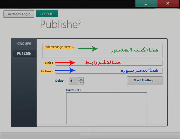 البرنامج يساعد فى النشر فى جميع جروبات الفيس بوك دفعة واحدة