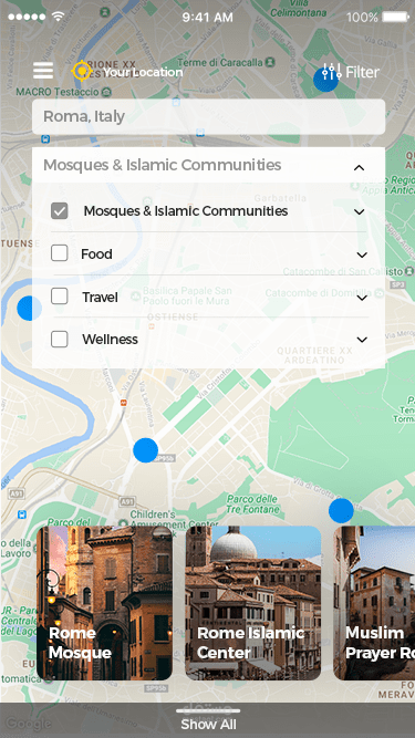 تطبيق جوال يعمل على عرض الأماكن التي تقدم خدمات حلال ويعتبر منصة للمسلمين في إيطاليا لمساعدتهم في العثور على أماكن مناسبة.