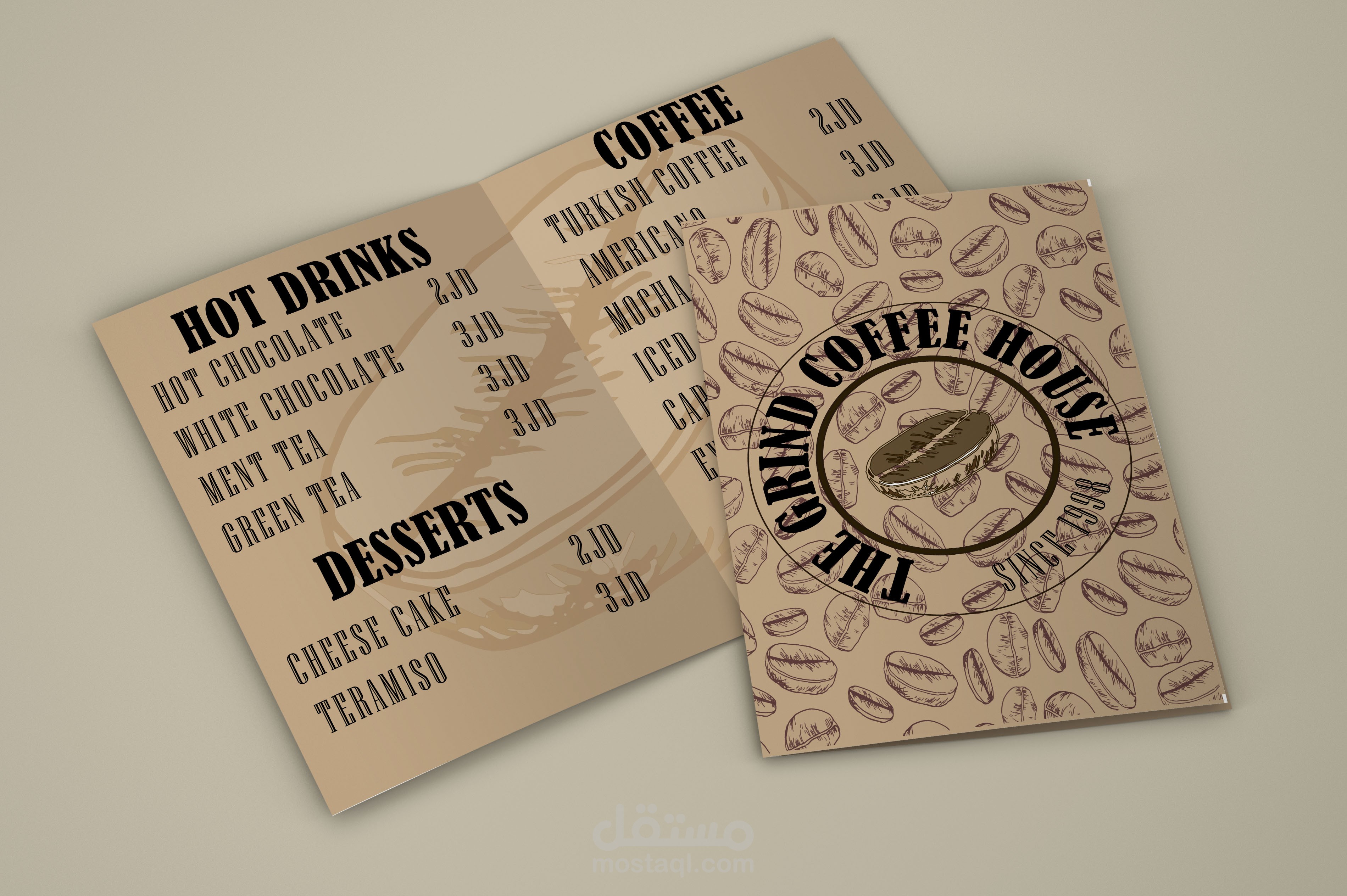 تصميم شعار وهوية بصرية ل مقهى THE GRIND COFFEE HOUSE