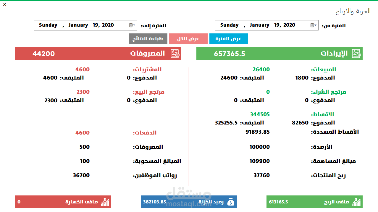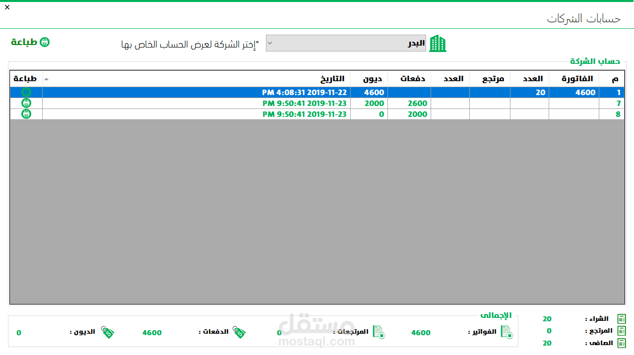 - كما يدعم البرنامج تقارير شاملة وتفصيلية عن جميع عمليات المبيعات والمشتريات ومرتجعات البيع والشراء وفواتير خاصة بكل العمليات ويمكن حفظها بصيغة PDF أو طباعتها كما يمكن الإتطلاع عن تقرير مفصل عن كل العمليات وطباعة التقرير وحفظه PDF.