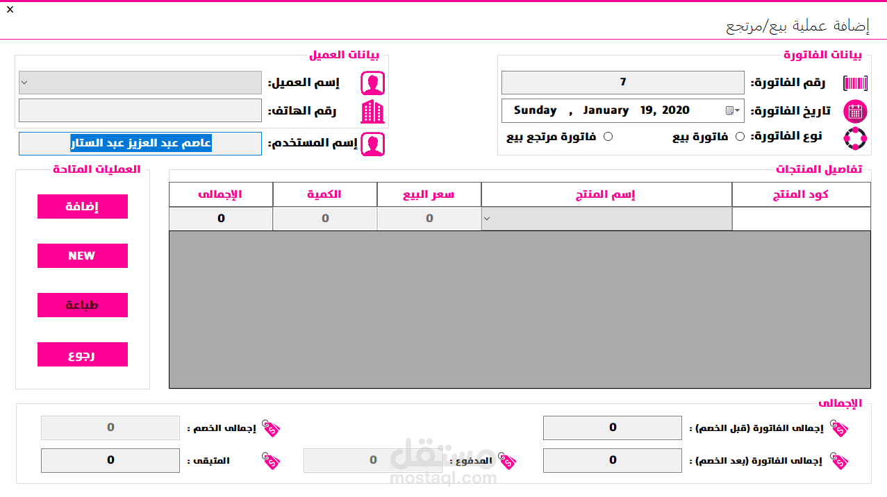 - هو برنامج إدارة شاملة لجميع أنواع ومجالات المبيعات المختلفة الذى يتميز بواجهة مستخدم تتيح سهولة فى التعامل ومتابعة الأصناف والكميات وجميع التعاملات الداخلية للمؤسسة التجارية وإدارة حسابات المصروفات والأرصدة وعمليات الأسهم وأيضا عمليات الأقساط كما يتوفر إدارة متميزة لجميع البيانات.