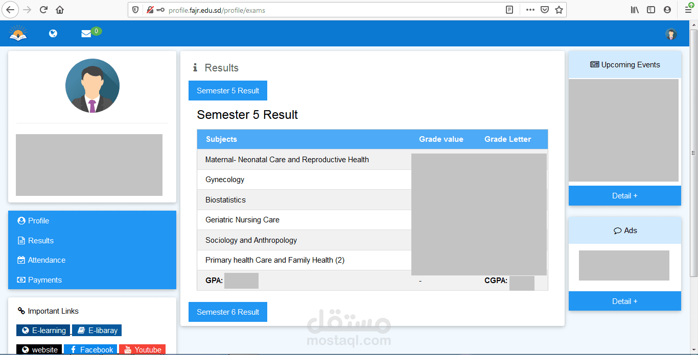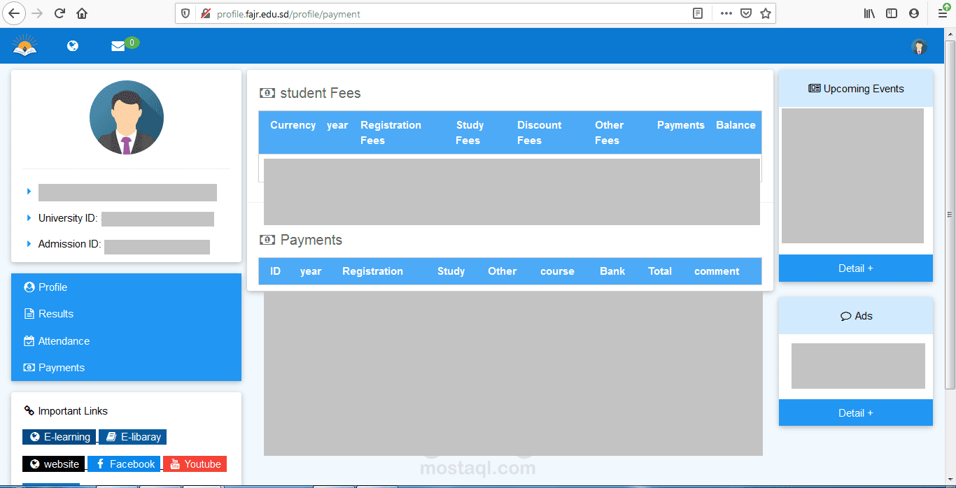 its PHP MVC webstie for Fajr college students that let them to check their main information, payment, attendance, exams resuts
