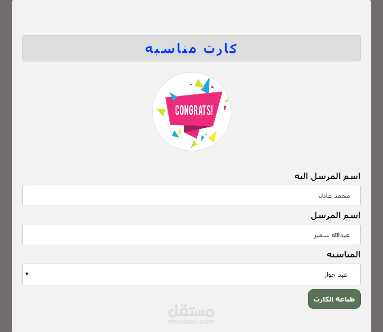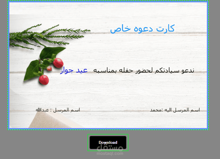 عباره عن صفحه الكترونيه يتم اضافه بيانات الدعوه فيها مثل اسم المرسل واسم المرسل اليه وسبب الدعوه عيد جواز او عيد ميلاد او غيرها ومن ثم يتم طباعه صوره الدعوه