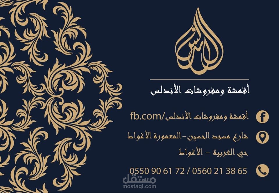 شعار و بطاقة عمل "مفروشات الأندلس"
