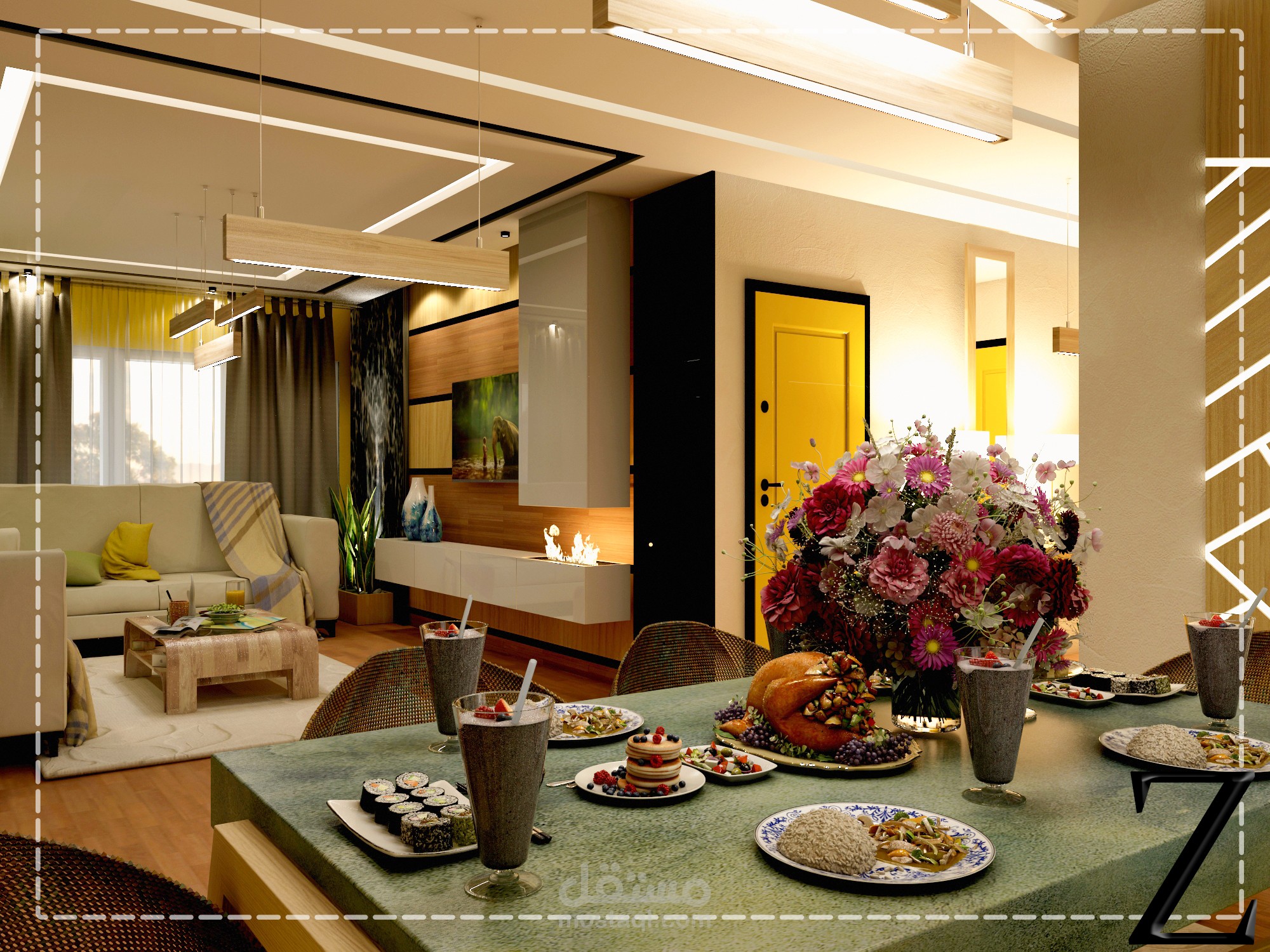 تصميم داخلي لغرفة معيشة بطريقة معاصرة وإختيار الألوان المناسبة لها .