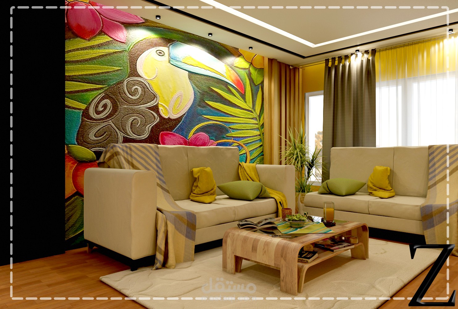 تصميم داخلي لغرفة معيشة بطريقة معاصرة وإختيار الألوان المناسبة لها .