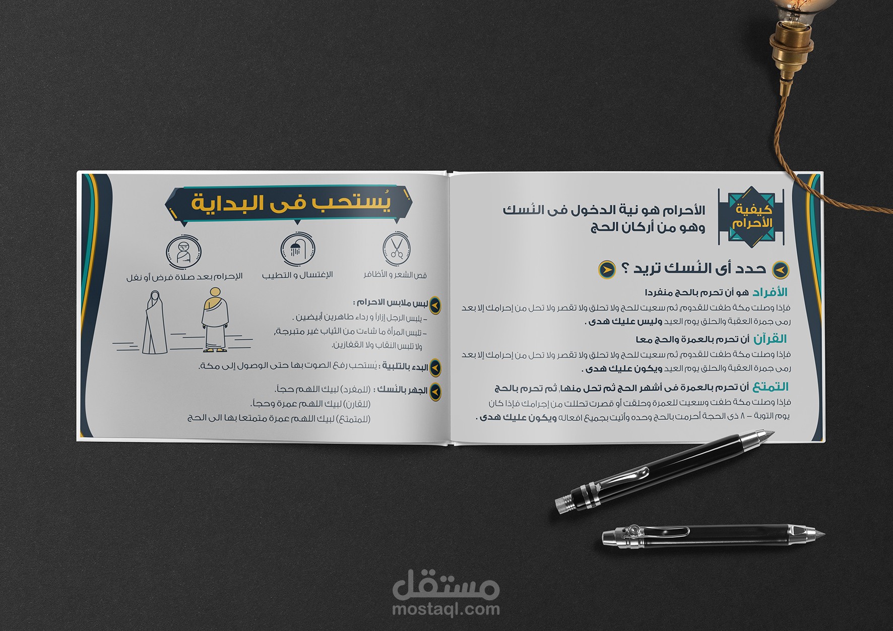 تم تنفيذ كتيب إرشادي يتحدث عن شعائر الحج والعمرة, وفي هذا المشروع سوف اقوم بعرض بعرض عدة صفحات من الكتيب ... أتمنى ان ينال أعجابكم ...