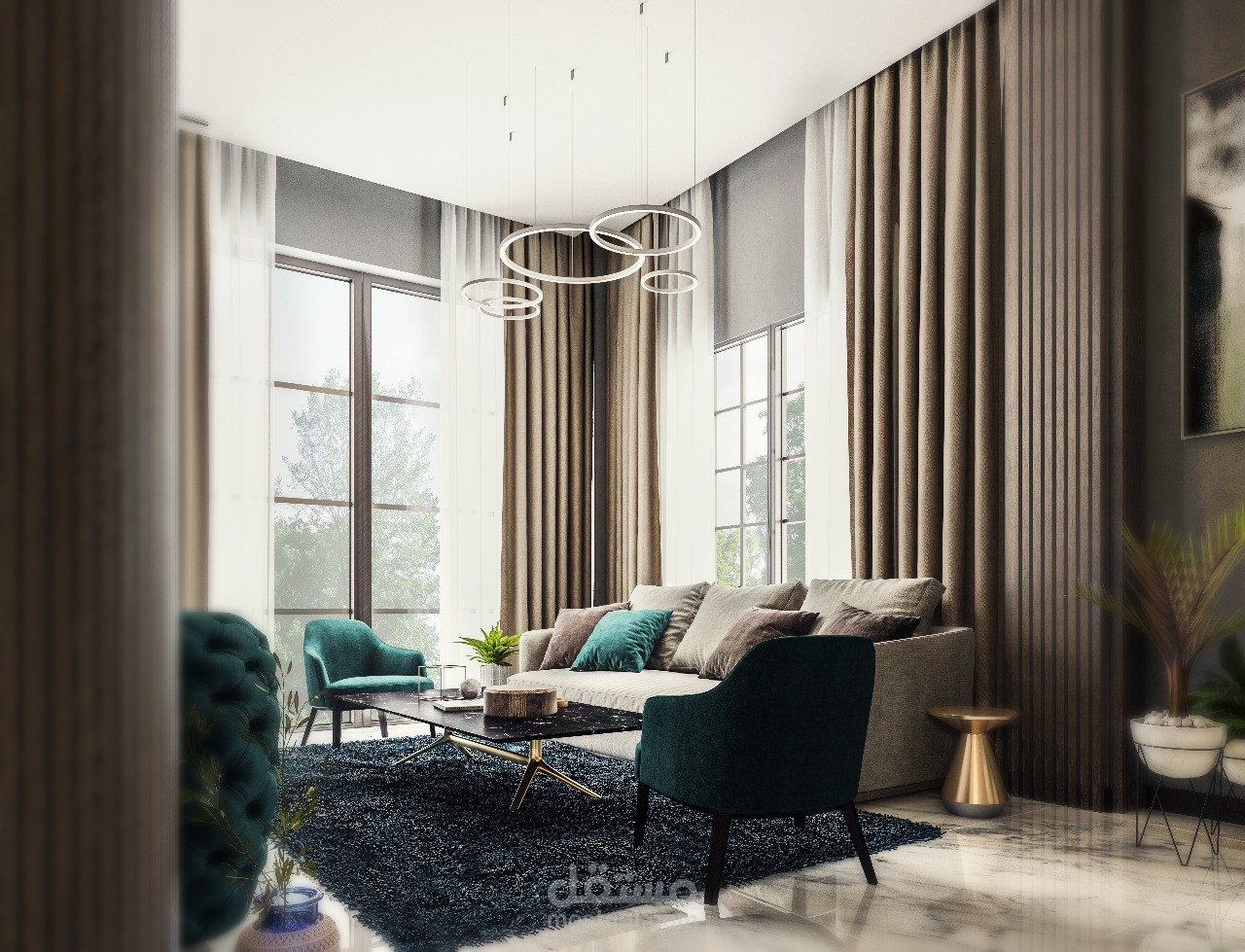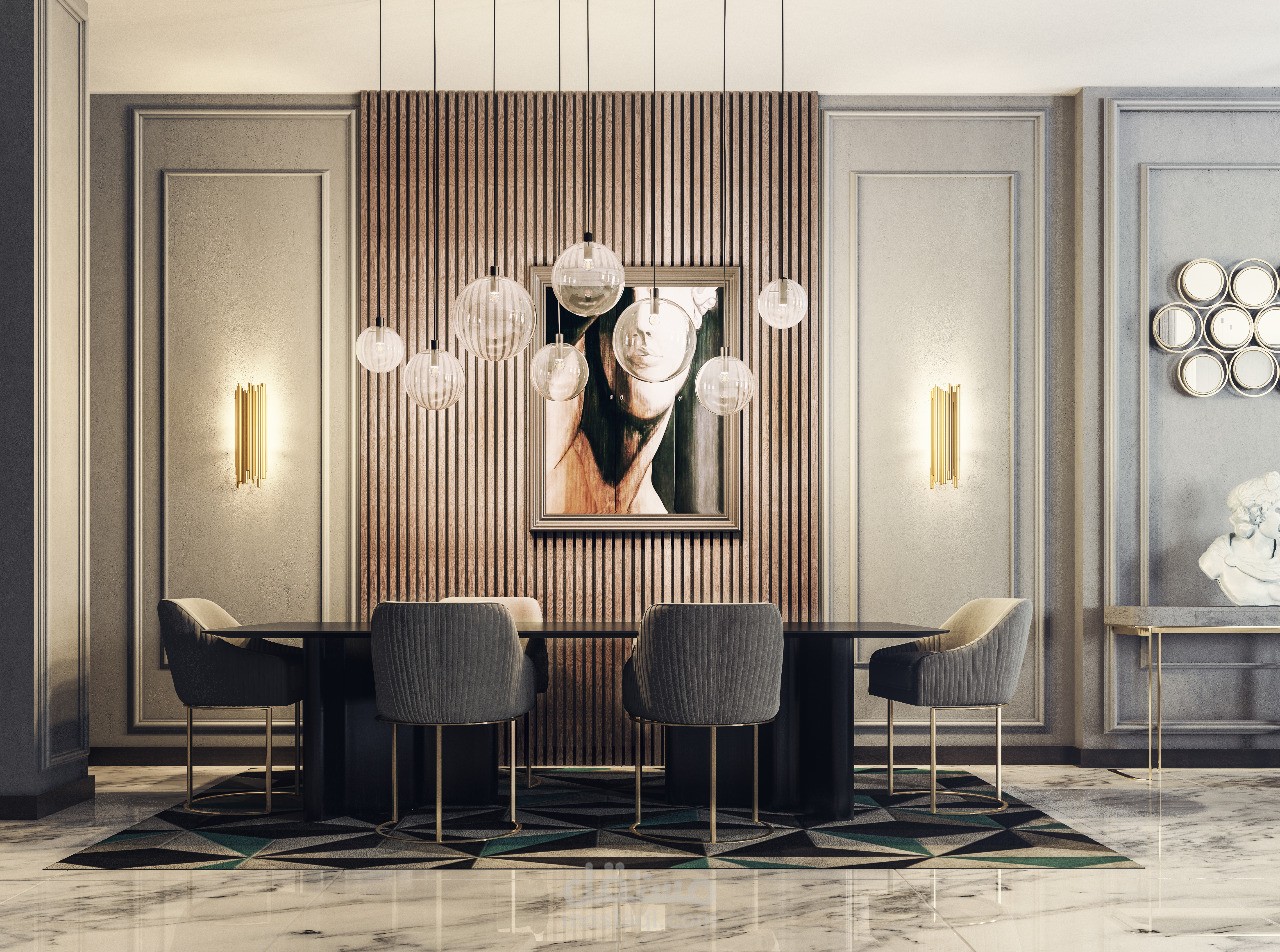 3D and design for a Reception & Dining zone with a warm feelings and woody taste