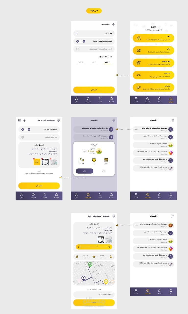 تطبيق مختص بالتوصيل بكل عمليات التوصيل بنظام تتبع وباكثر من مستخدم زبون ومندوب توصيل
