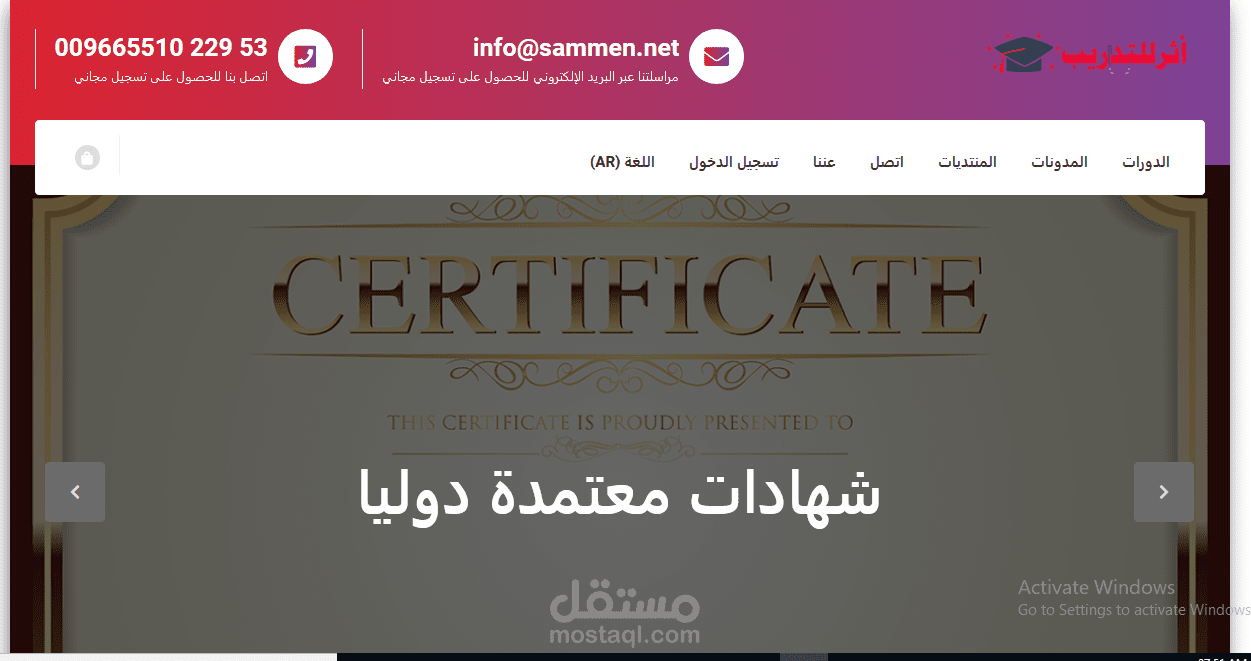 موقع للتعليم والتدريب عن بعد يحتوي على الآتي :