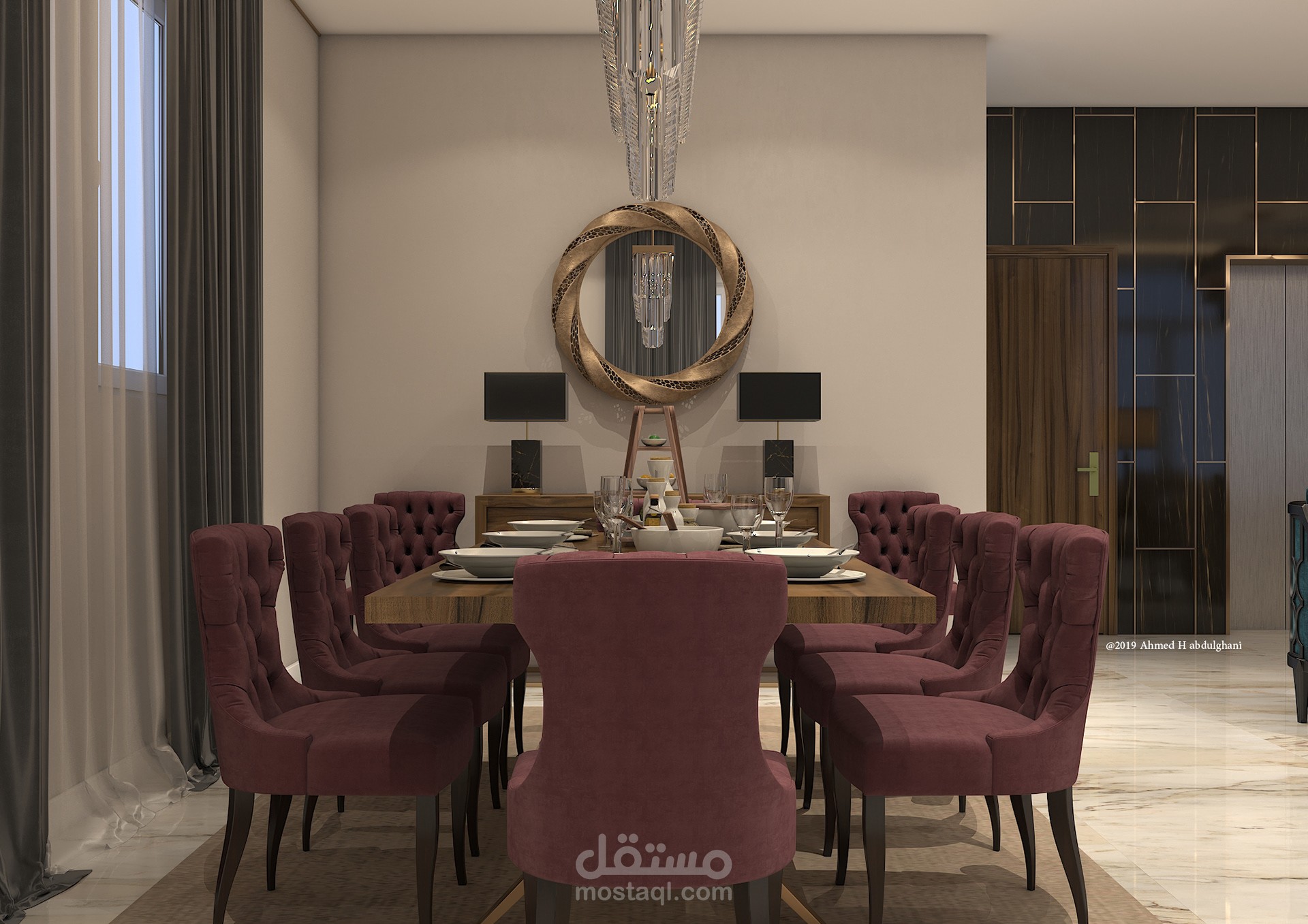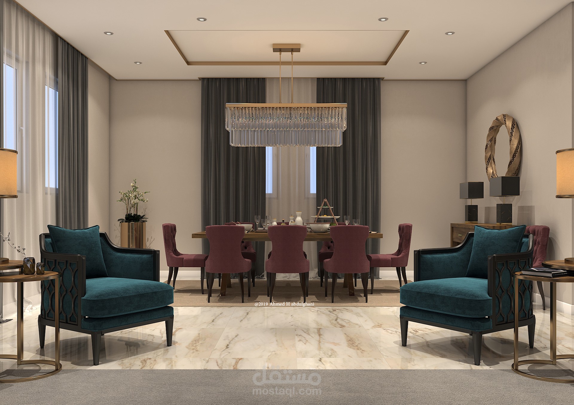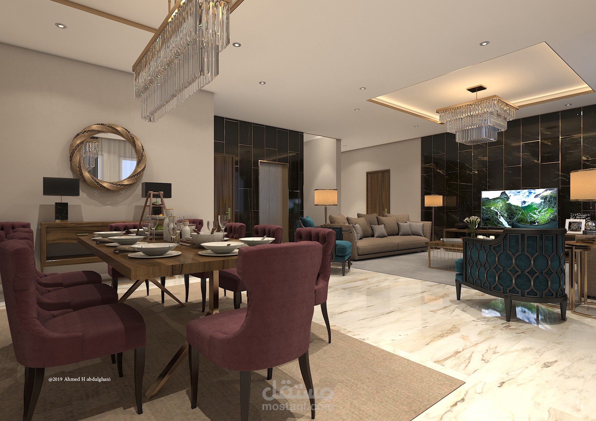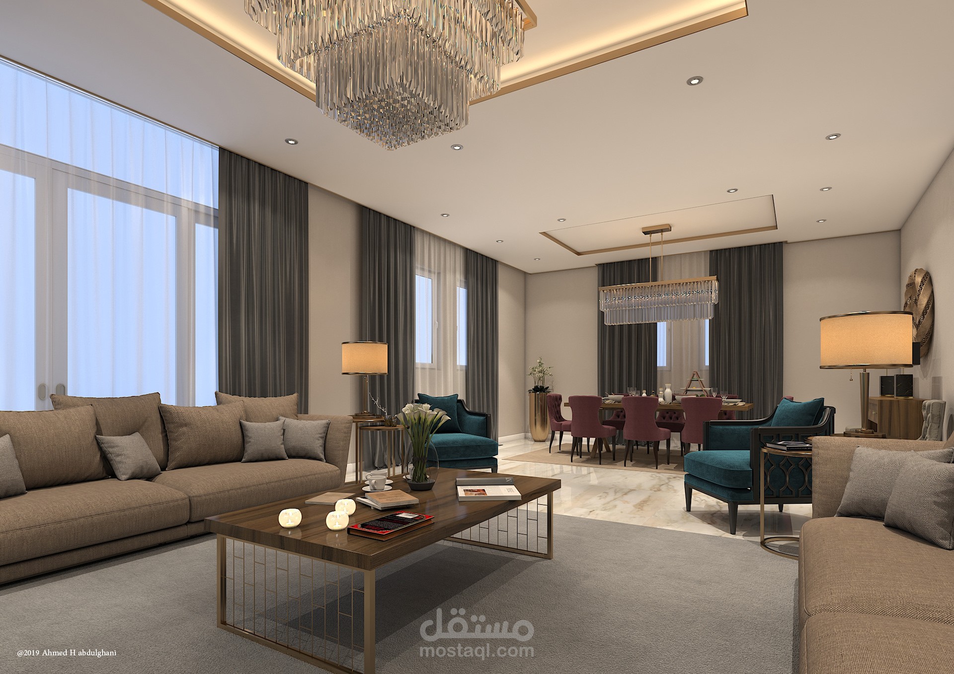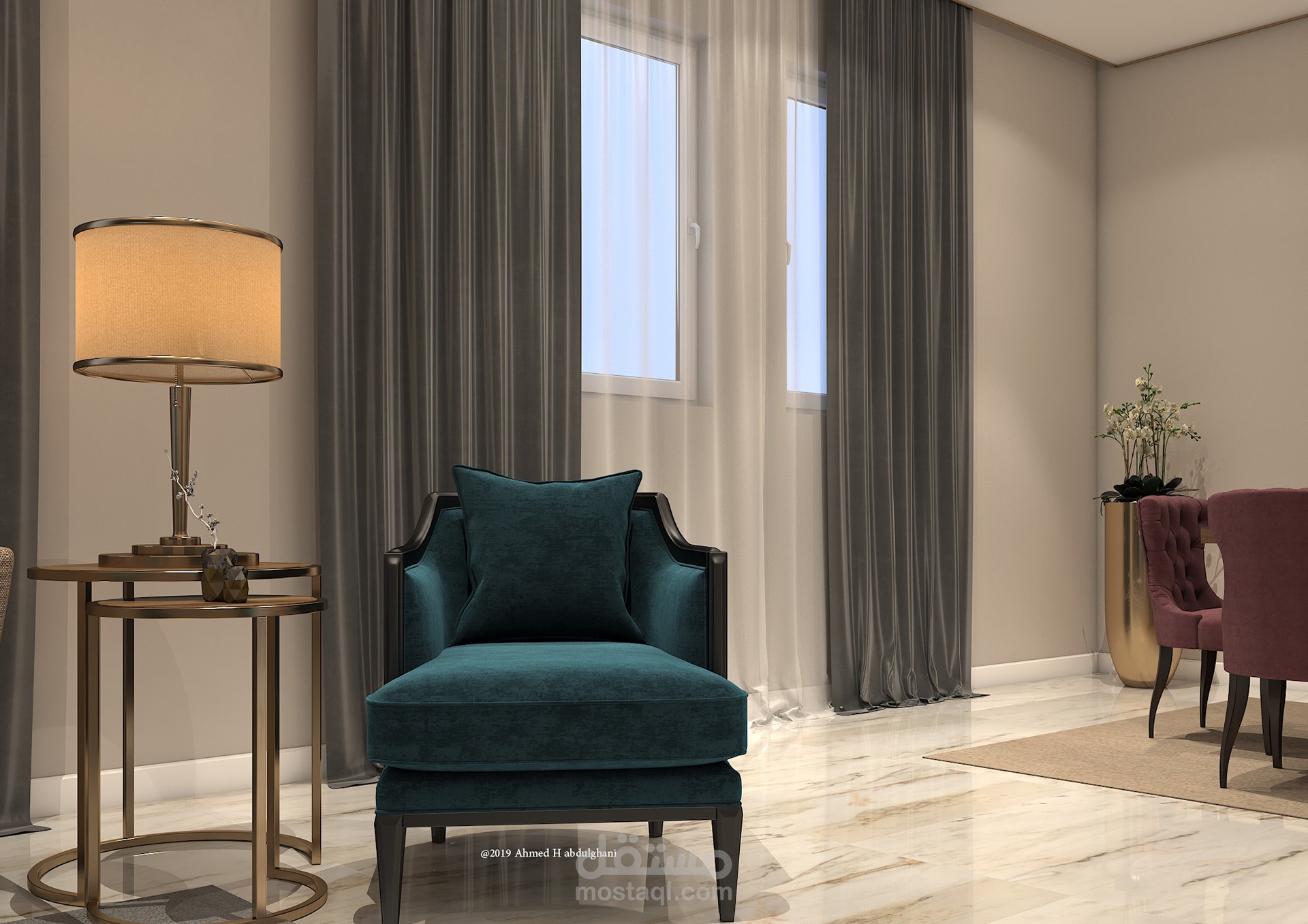 تصميم مودرن بسيط لصالة معيشة لفيلا بالطائف